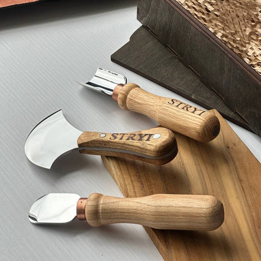 Basic set for woodcarving, Chip carving kit, STRYI-AY Profi, Chip carving tools, Chip carving knives