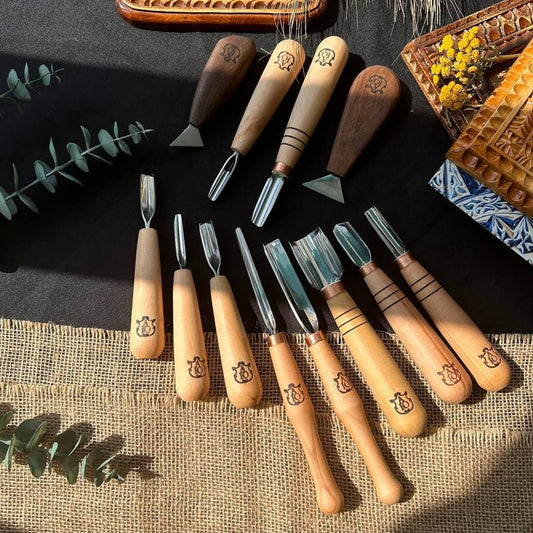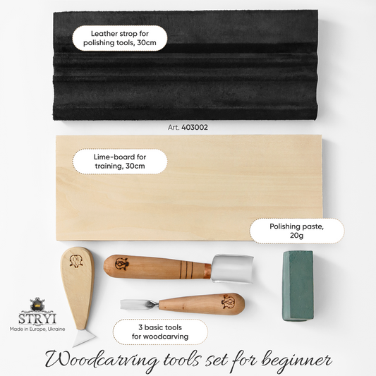 Basic wood carving kit STRYI for Whittling figures and Relief carving, Versatile set