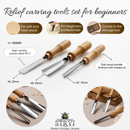 Basic woodcarving tools set for relief carving, 3pcs STRYI Start