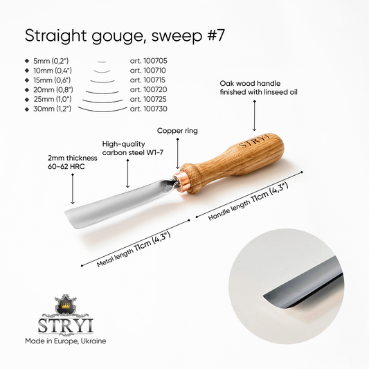 Gouge #1 straight chisel STRYI Standart, Flat chisel, Straight flat-beveledgouge