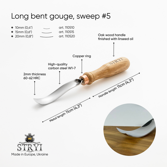 Long bent gouge 5 profile, Woodcarving tools STRYI, Carving gouge, Carving background, hand forged tools