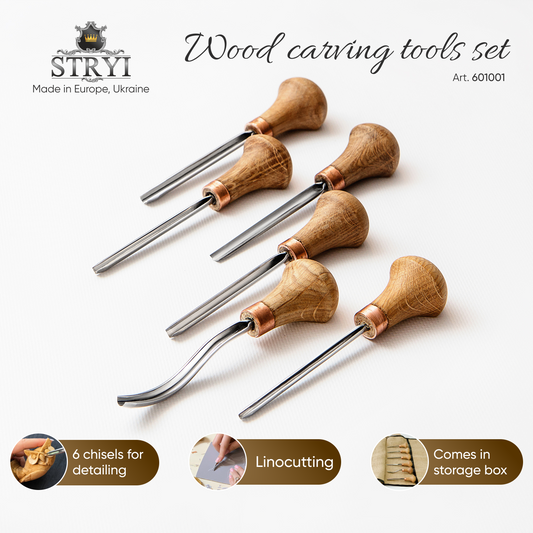 Whether you're a beginner, a seasoned master, or a student of an art school, these carving tools make an excellent choice. Their ergonomic handles, crafted from high-quality Ukrainian wood, and precision blades provide unmatched comfort and control, making them ideal for a wide range of woodworking and artistic projects.