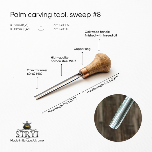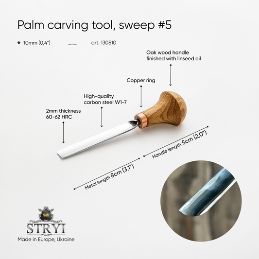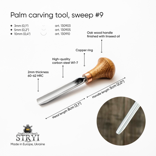 Palm carving tool STRYI Profi sweep #9, Linocutting tool, Burin Engraver, Detailed tool, Palm gouge