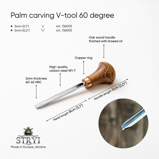 Palm carving V-tool STRYI Profi 60 degrees, Micro carving chisel, Engraving tool, Burin, Graver tool