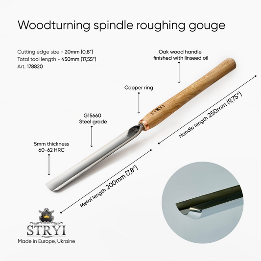 Spindle roughing gouge STRYI Standart 20mm, Lathe Wood Turning Tools