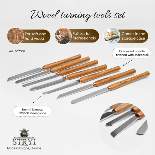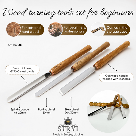 Wood turning tools set STRYI Profi 3pcs, Іet of lathe tools, Wood turning kit