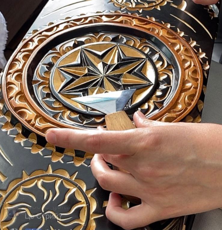 Chip carving knife 70mm STRYI, art. 390070 is designed for volumetric chip carving patterns and making deep triangles, and rhombus. Unique technique of performing chip carving is provided by experienced Ukranian carver Adolf Yurev, when the wide cut triangle becomes basic for detailing chip carving cuts.
