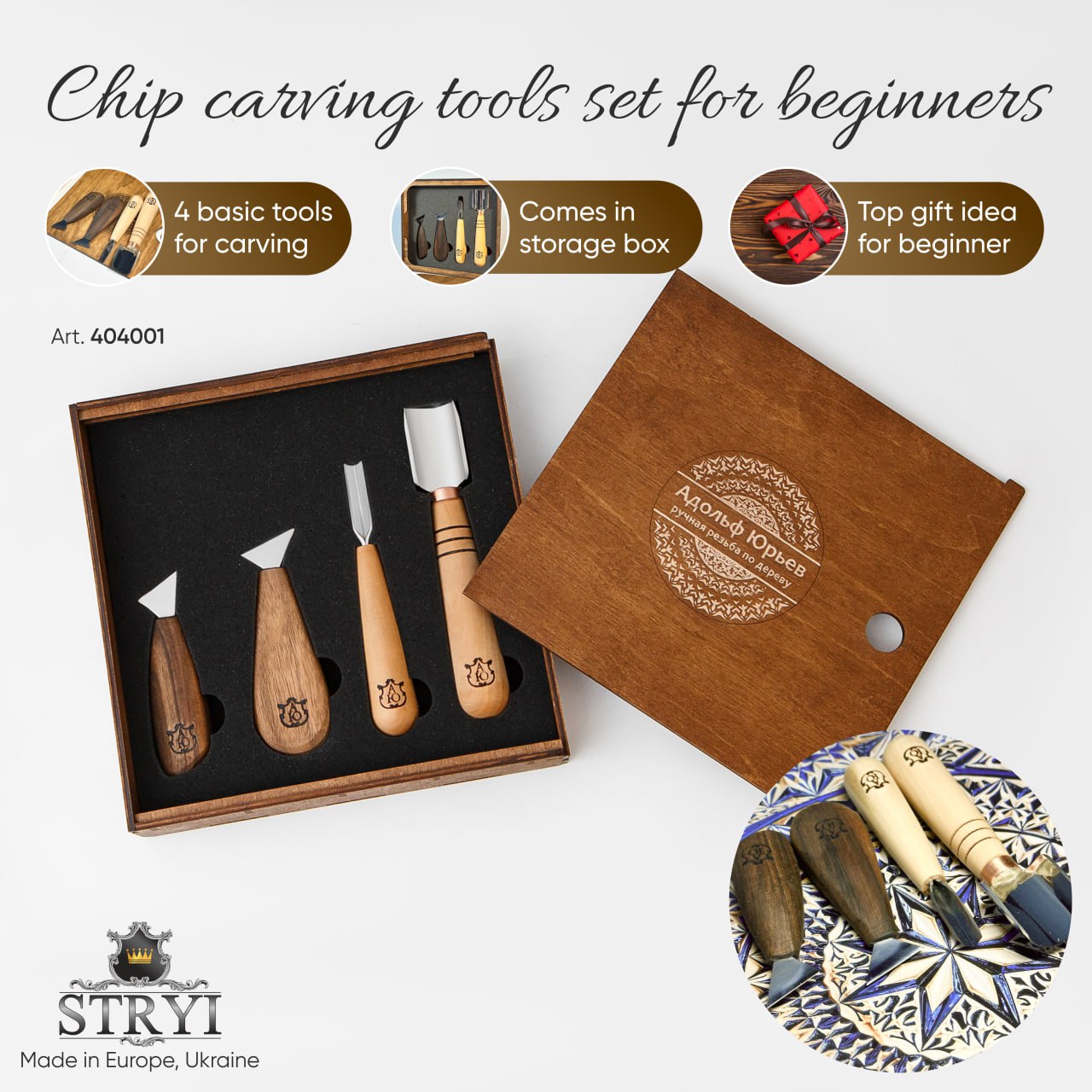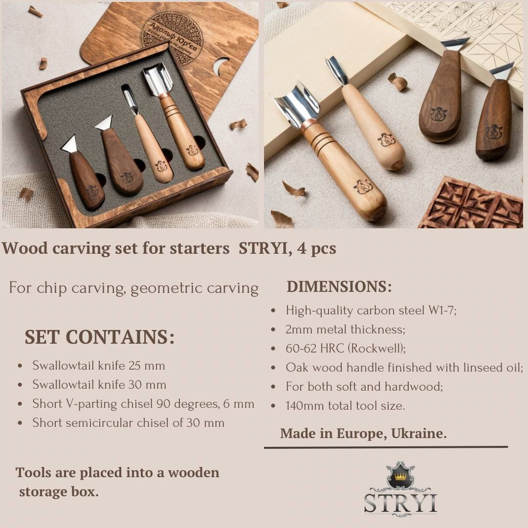 Chip carving set for starters, Chip carving kit STRYI 4 pcs