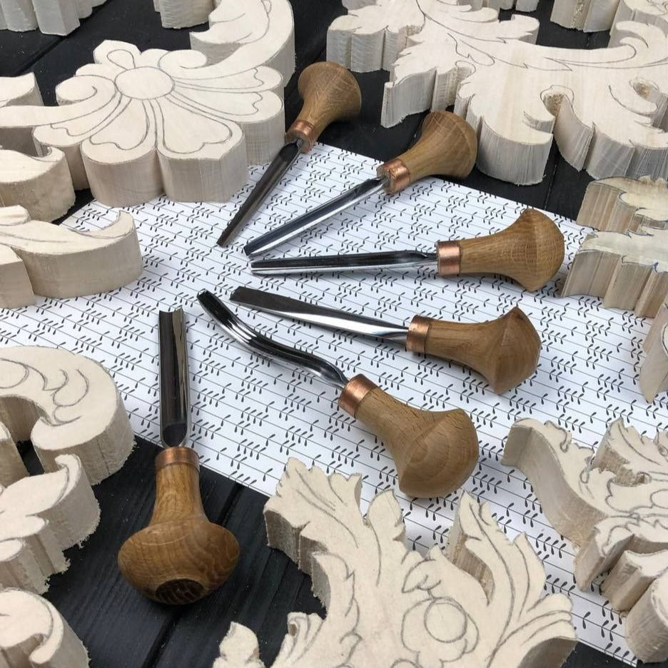 Set of palm tools for relief carving STRYI Profi, 6pcs (art.601002) is completed with different types and sizes of palm chisels for the best combination in detailing figurines, making faces, and body parts, making animals, toys, and so on.