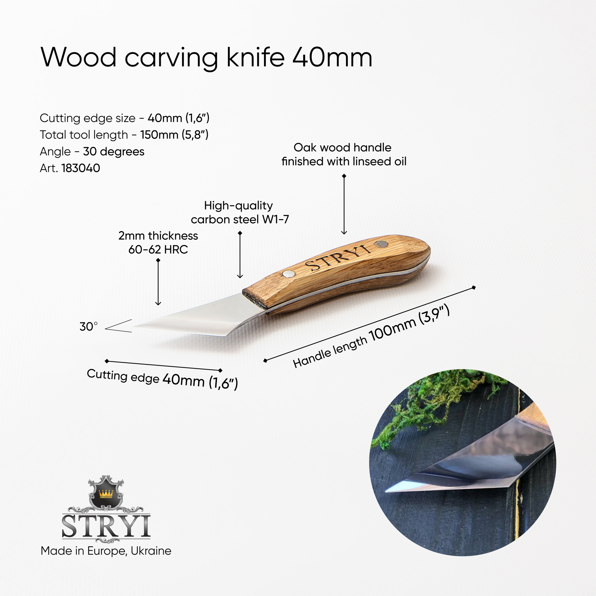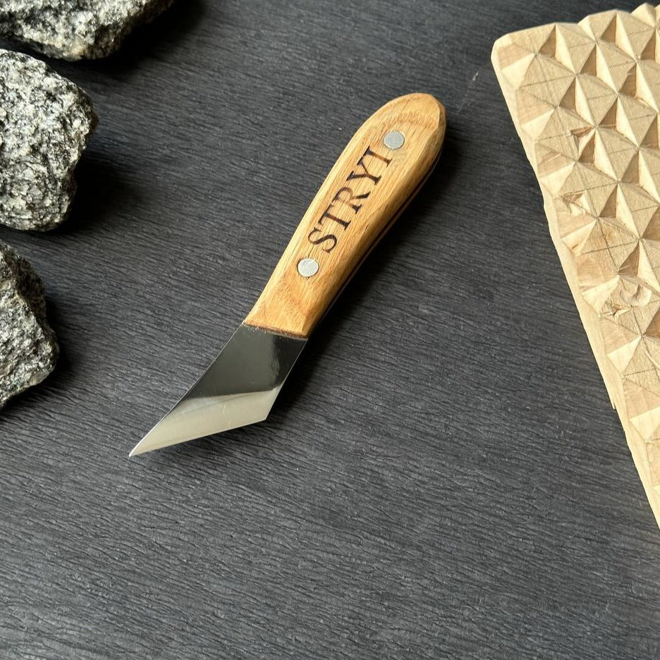 Figured carving knife for woodcarving 40mm STRYI Profi, Whittling knives, Sloyd knives, Knife for wooden jewelry