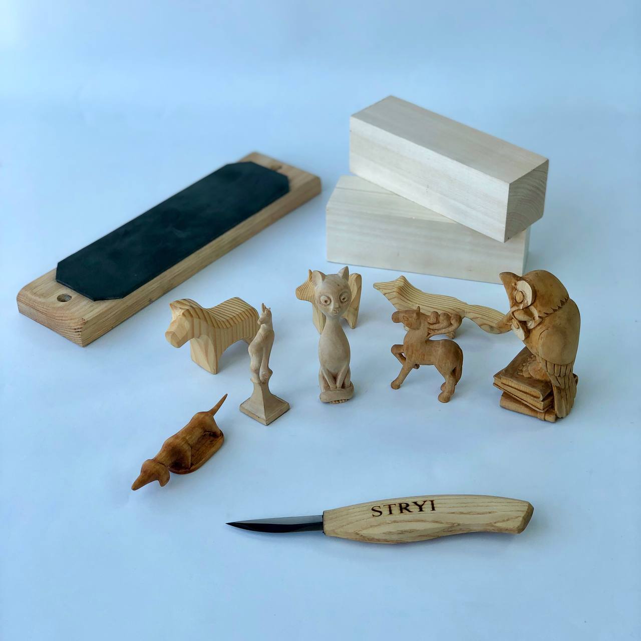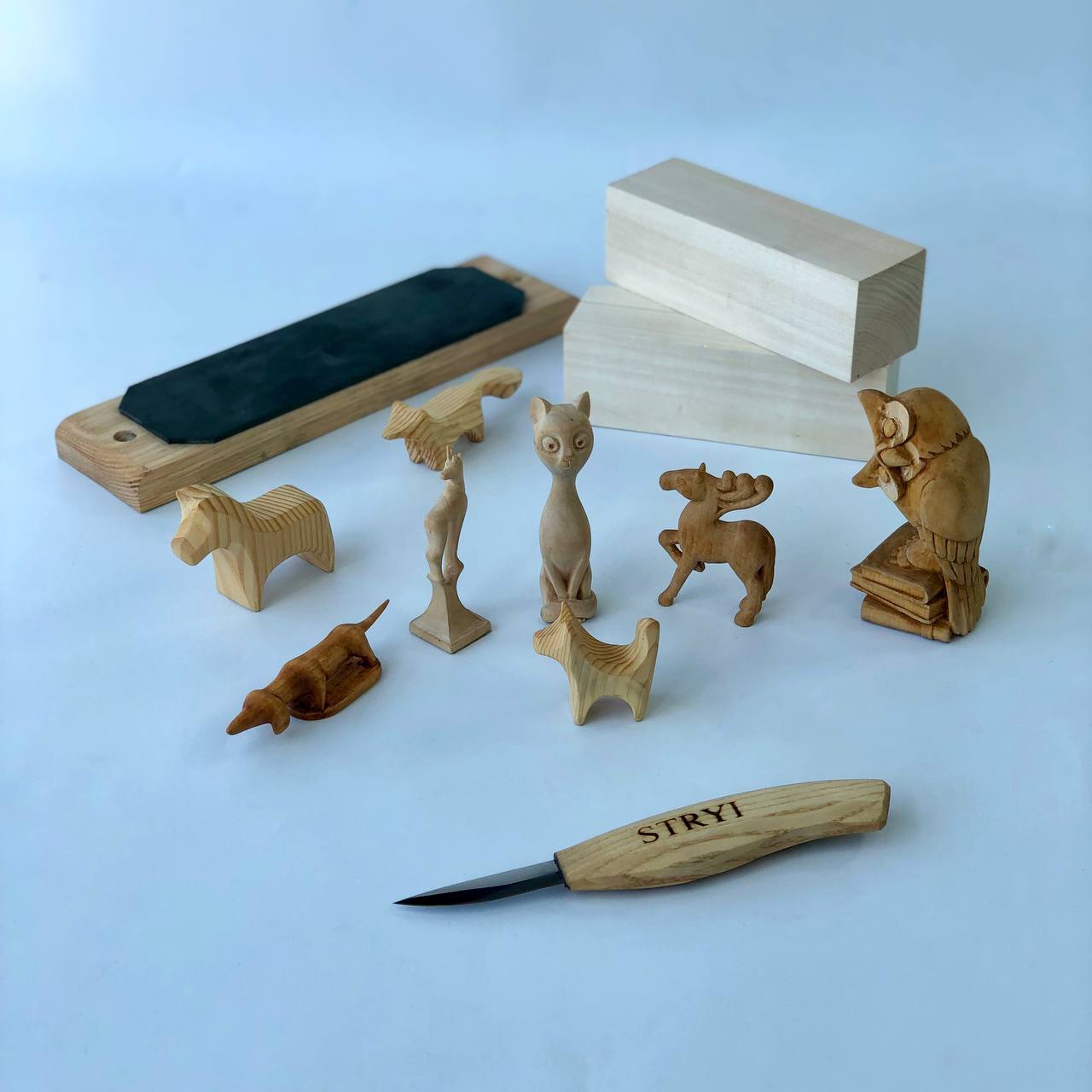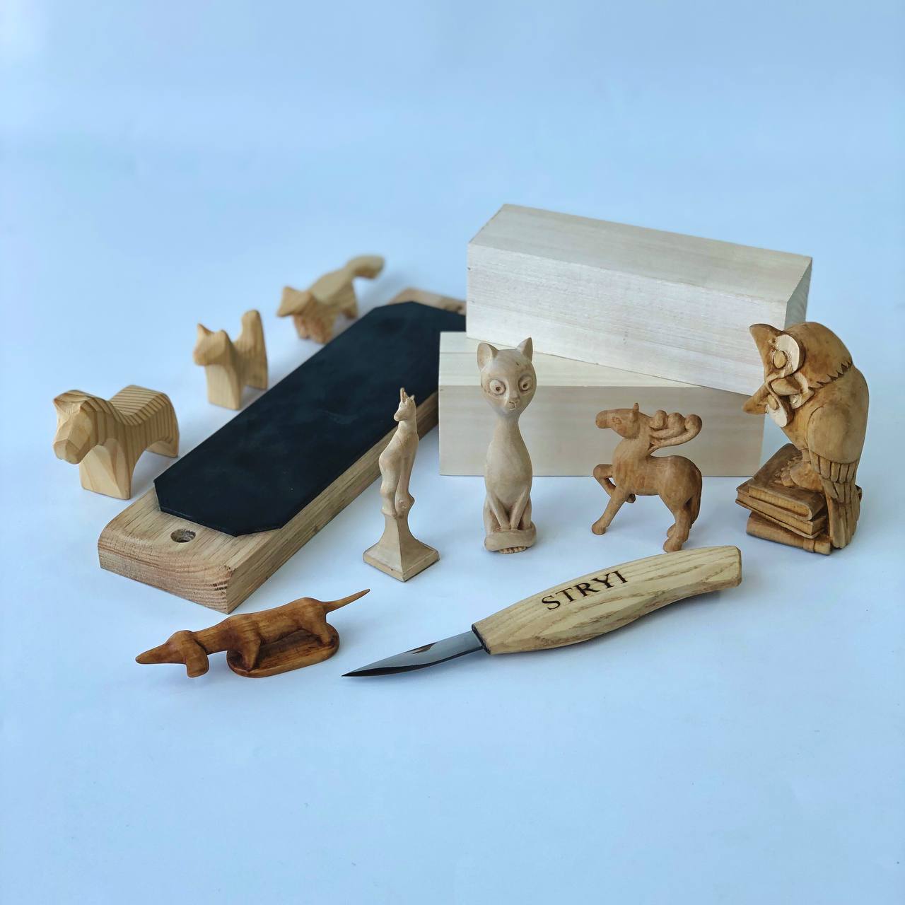 This carefully curated set includes everything you need to start whittling your own beautiful wooden figurines.