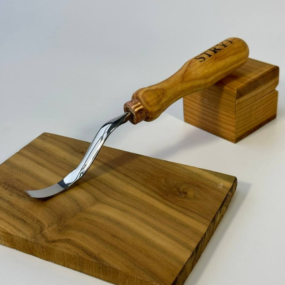 Gouge long bent chisel, profile#1 flat, STRYI Profi, Bent gouges, Carving tools, Curved tools