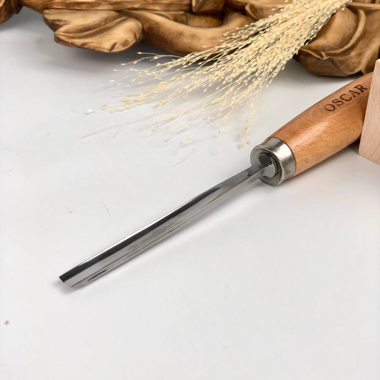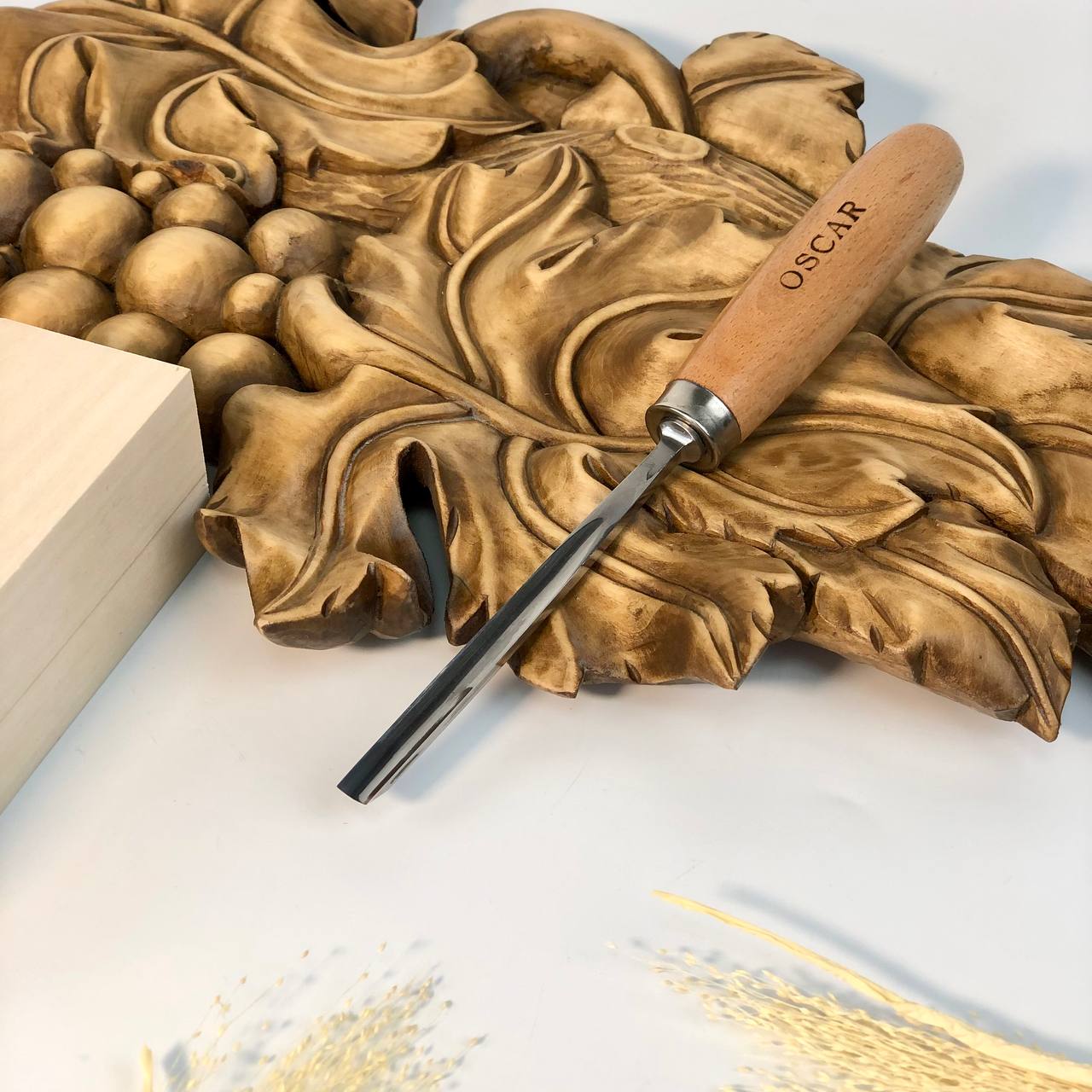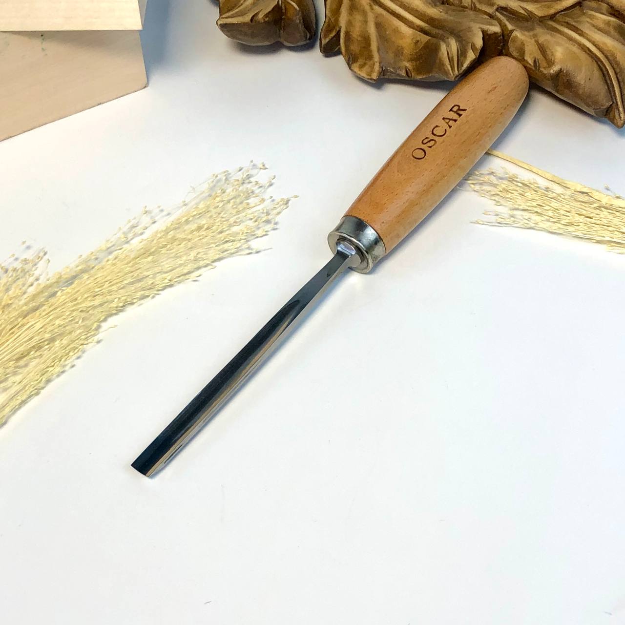 Gouge #5 profile, straight chisel OSСAR is specifically crafted for creating flat-relief carvings, allowing for precise and controlled removal of wood material to achieve desired contours and shapes.