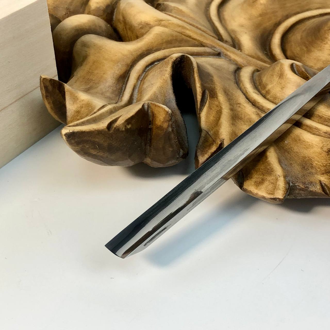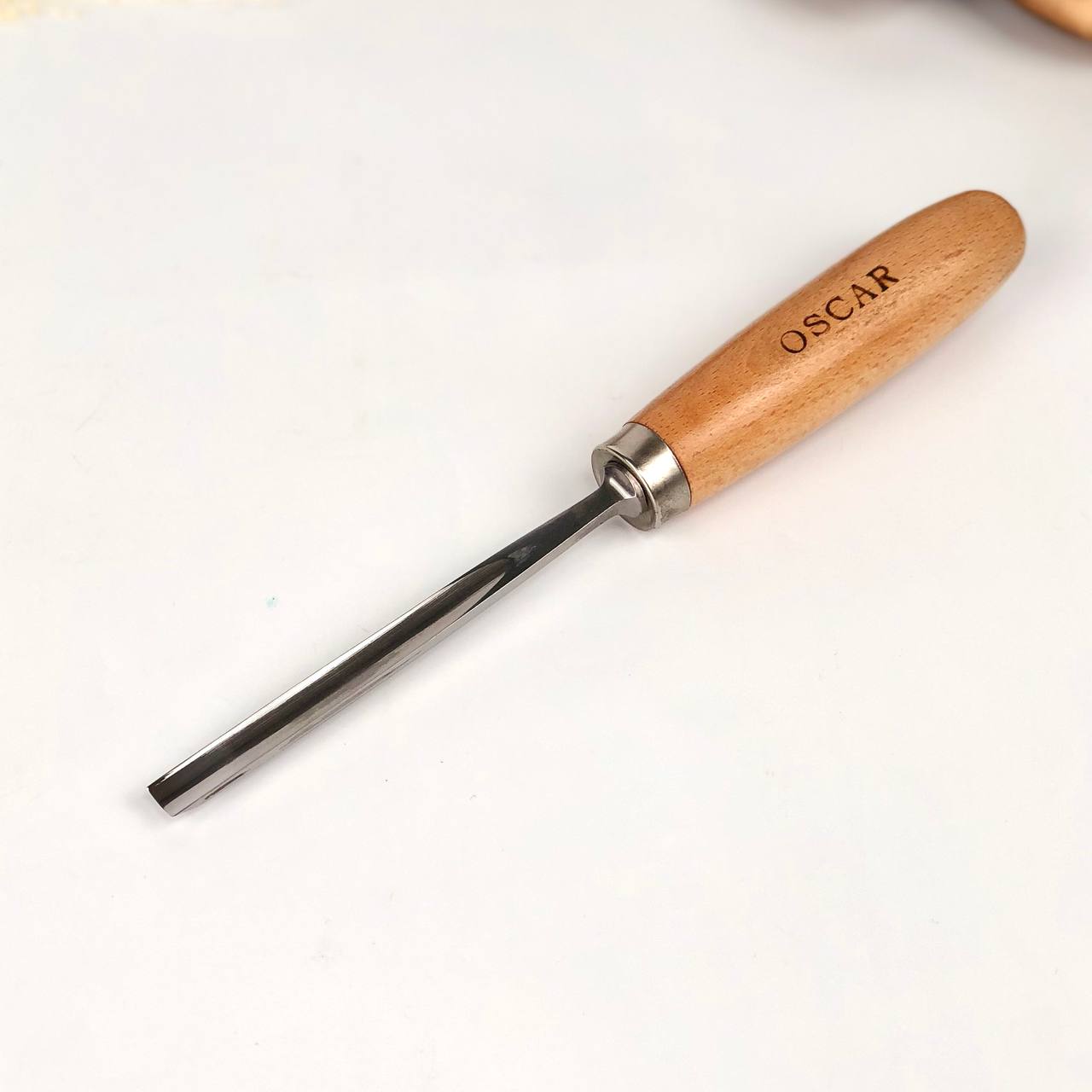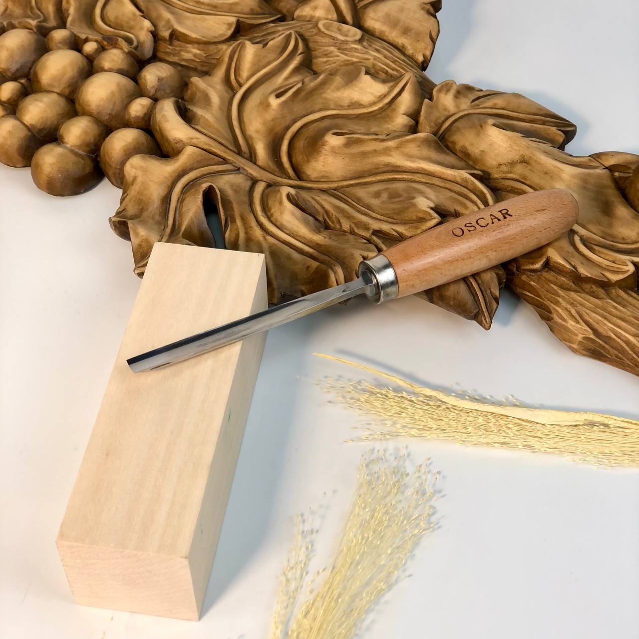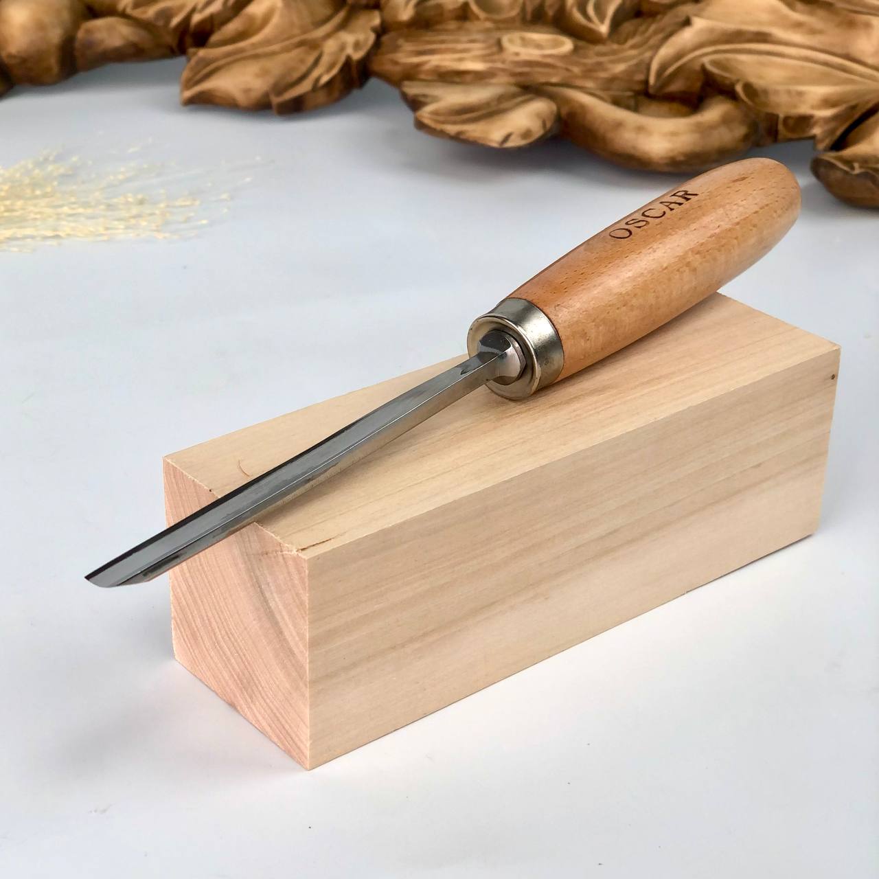 Gouge #5 profile, straight chisel OSСAR is specifically crafted for creating flat-relief carvings, allowing for precise and controlled removal of wood material to achieve desired contours and shapes.
