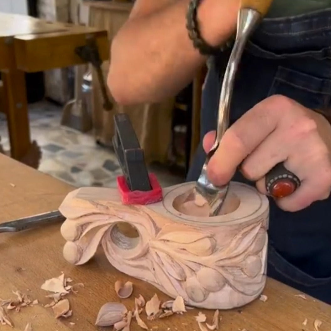 A large bent gouge is used for carving to remote wooden chips avoiding touching the product surface by the handle. It is popular for fairy name "Swan neck gouge" and it is suitable perfectly for making spoons, plates, kuksas, cups, bowls and other deep items. This type of gouge has different sizes. It's made from high-quality carbon steel. The handle material is oak wood finished with linseed oil.