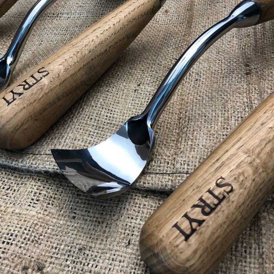 Large bent chisel for kuksa spoon cutting, STRYI Profi is designed for carving bowl, kuksa, and other deep items.
