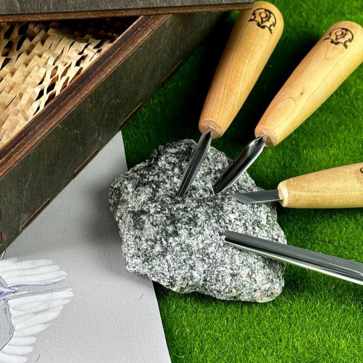 The Linocut ToolKit STRYI features 4 precision knives designed for thin, detailed cutting, perfect for creating intricate designs for printmaking. Each knife is crafted to provide control and accuracy, ensuring clean and sharp cuts on linoleum or similar materials. The kit includes 4 blade shapes to suit different cutting techniques, making it ideal for both beginners and experienced artists looking to create professional-quality prints.