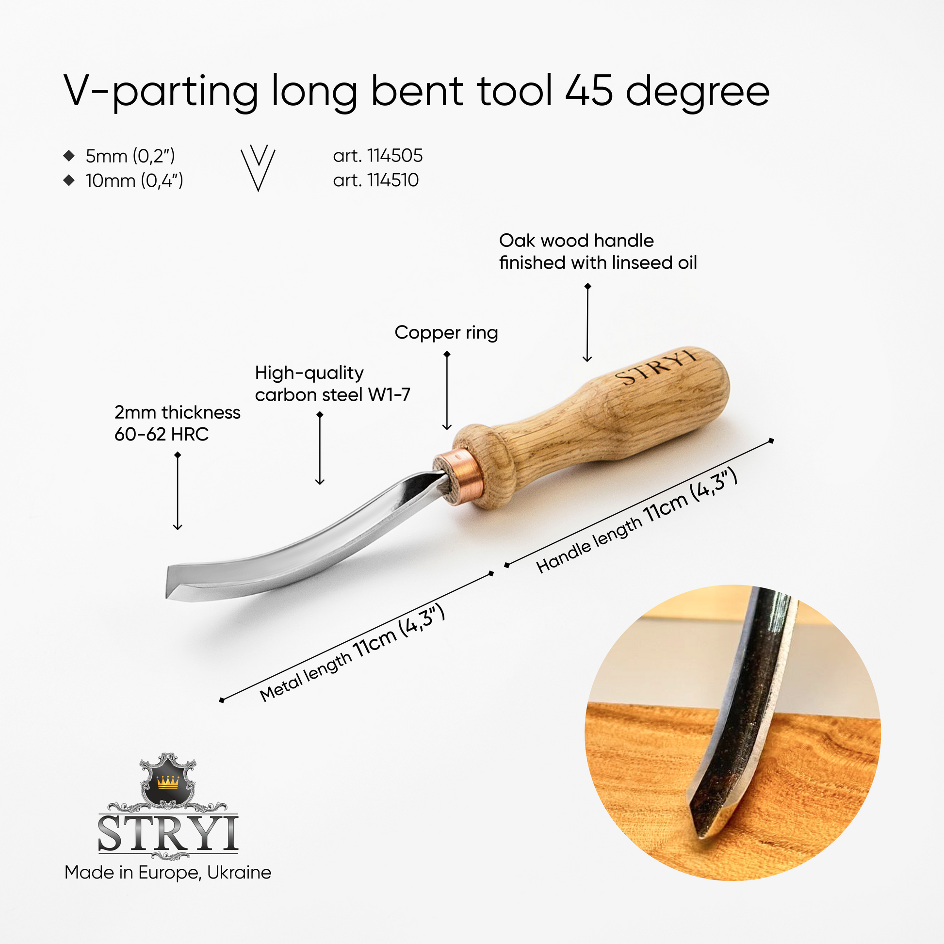 Long Bent V-parting Gouge STRYI 45 degrees, Detailing wood carving, Carving tool