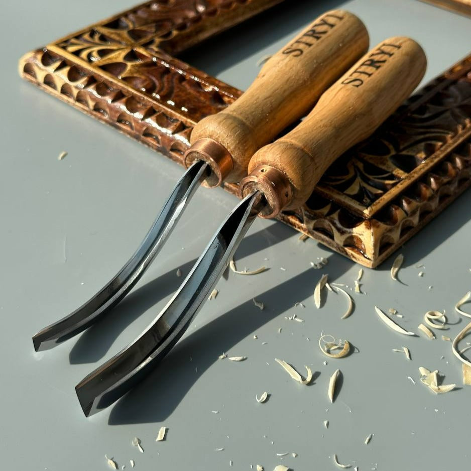 Long Bent V-parting Gouge STRYI 45 degrees is the perfect companion for woodcarving enthusiasts!