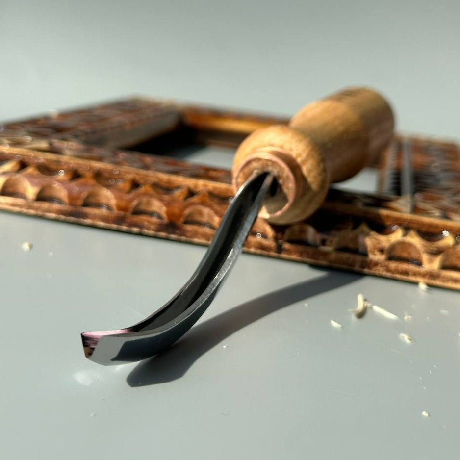 Crafted with carbon steel W1-7 and an oak wood handle, this tool combines durability with a comfortable grip. Make V-parting cuts or create long patterns easily with the bended blade in ladle form, ensuring that you can work with precision without any discomfort.
