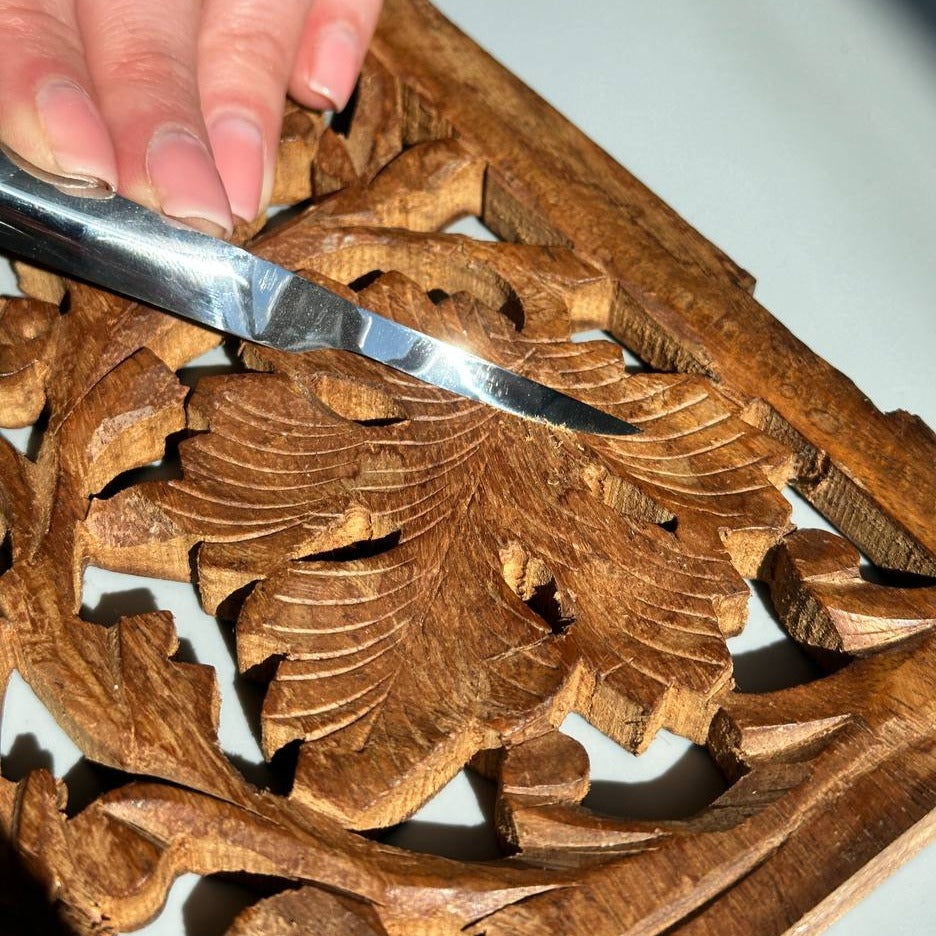 The thin extra sharp blade helps to dive into different gaps, clean up under parts of carved items making a 3D effect. It is available with right and left cutting edges. With a thin extra sharp blade, the Long hook tool STRYI Profi is designed to help users achieve a 3D effect by easily diving into gaps and cleaning up under parts of carved items. Its unique design, with both right and left cutting edges, makes it a valuable tool for relief carving.