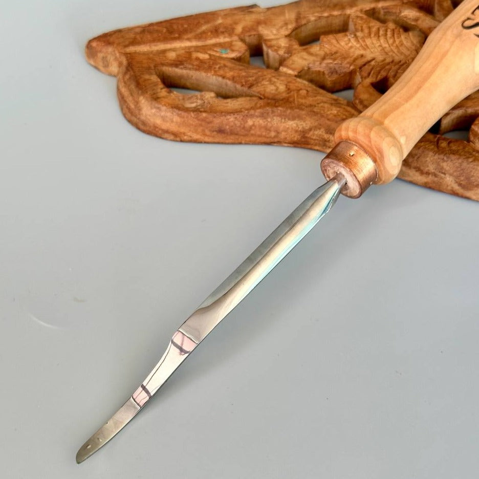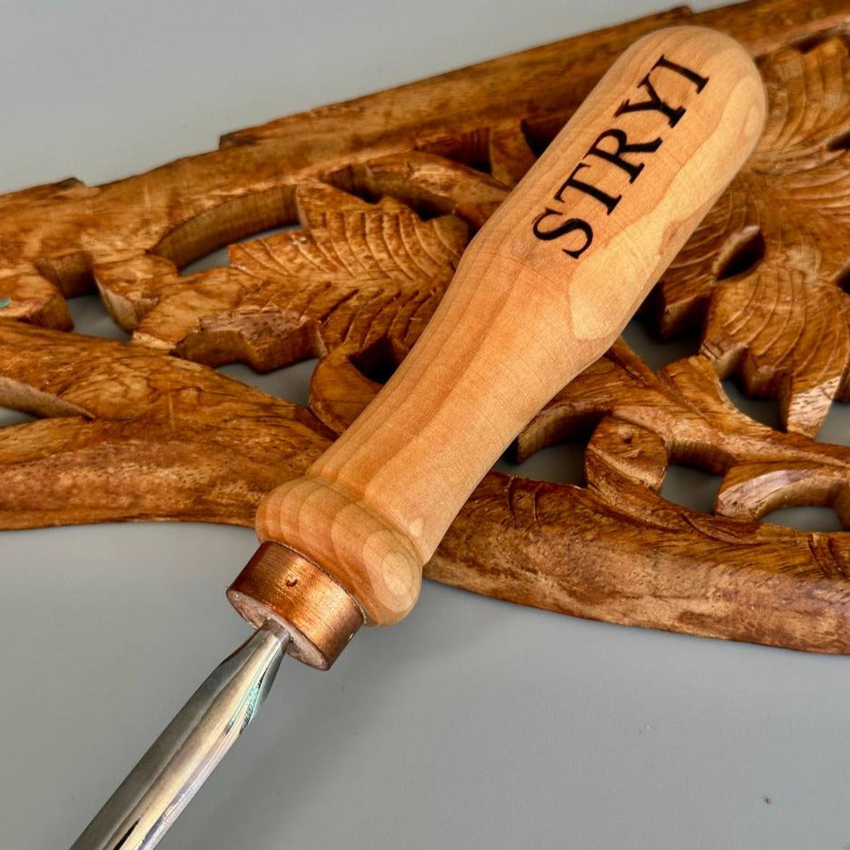 Long hook tool STRYI Profi for relief carving is a detailing chisel for crosscutting, unique tool for relief carving.