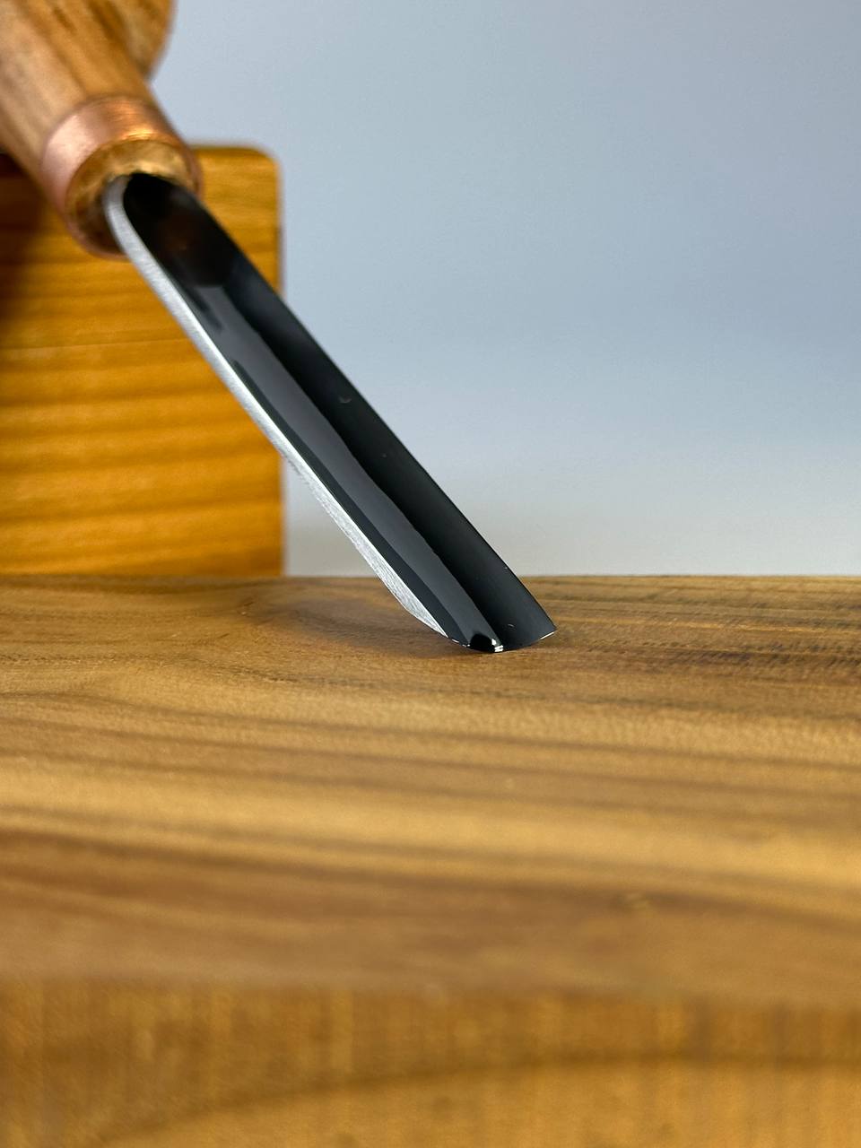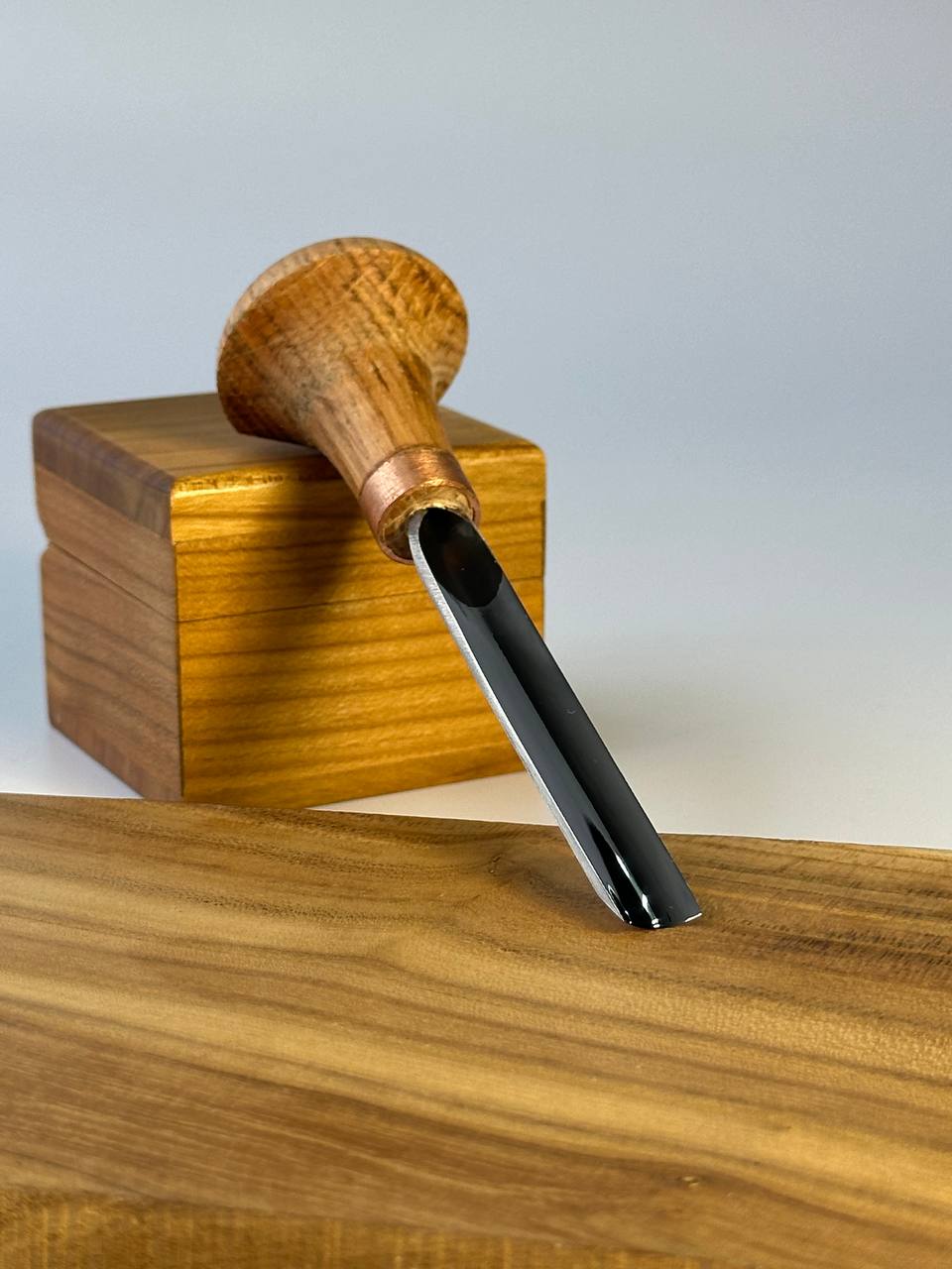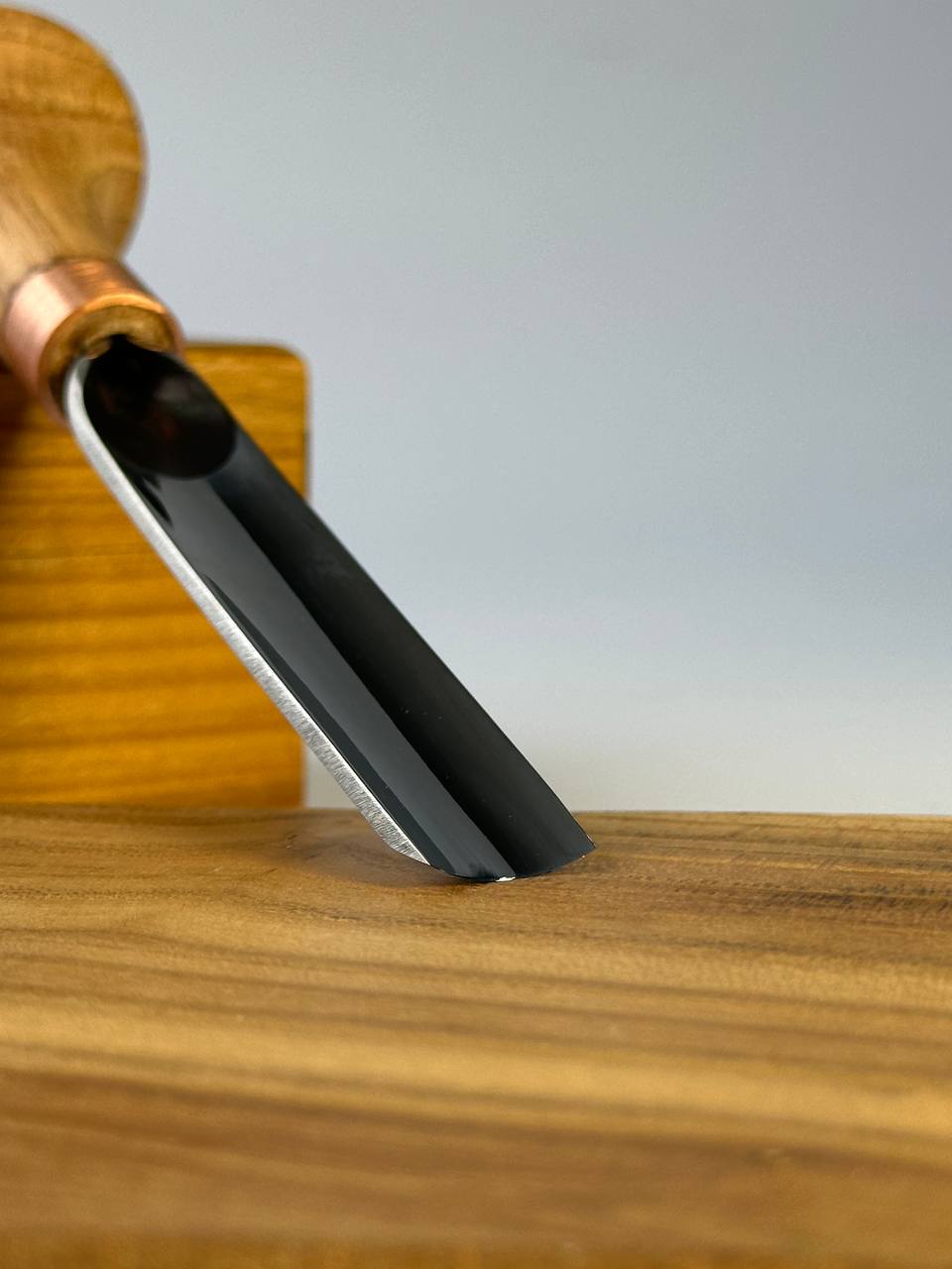 Palm carving chisel sweep #7 is made of forged steel for precision and durability, this hand forged knife is necessary carving tool for detailing figurines, relief carving, whittling wooden jewelry and linocutting. A carving chisel that is ideal for making intricate micro-details in hard-to-reach places. The deepness of gouge allows to smooth surface and shape tiny carving patterns.