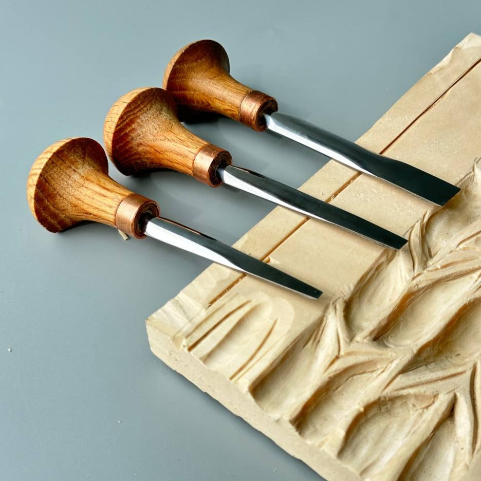 Every chisel passed through the technical control department before it is shipped. Quality control test sharpening quality, hardening and hardness of the metal, which ensure long lasting and comfortable using of the tool in carving. Tools are carefully packed while delivering. Cutting edges are protected from the damages. Company guarantee the declared quality of the tools and proper condition while receiving.