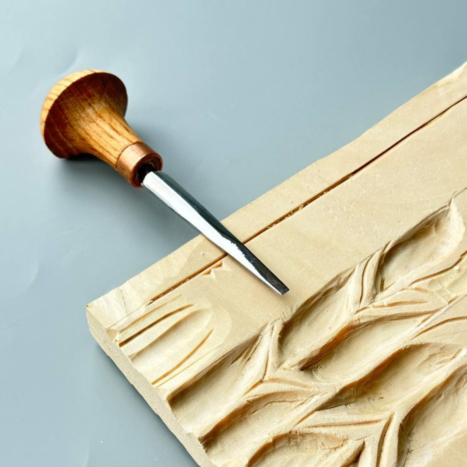 Palm carving flat-beveled straight chisel #1, is easily applied for detailed patterns and create beautiful engraving.