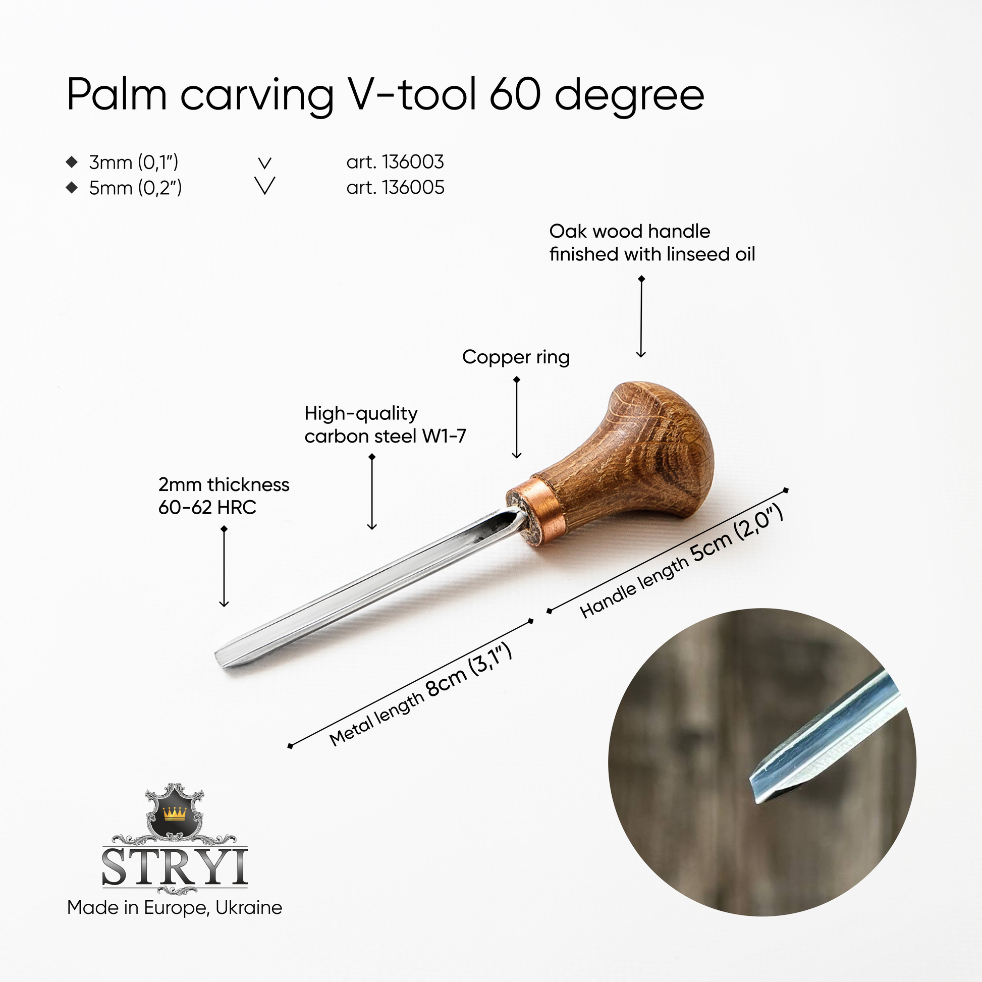 Palm carving V-chisel 60 degrees, is represented in next sizes: 3mm (art.136003) and 5mm (art.136005).