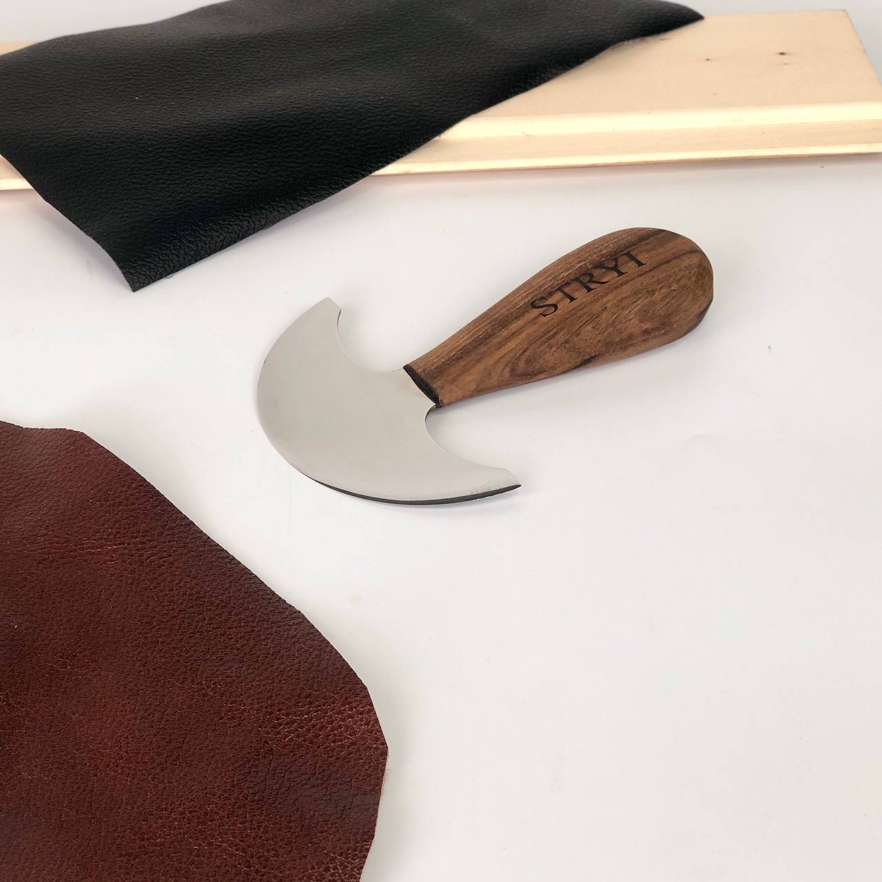 This knife was designed for the specific request of experienced leather craftsmen who make a horse riding gear and other complex leather items.