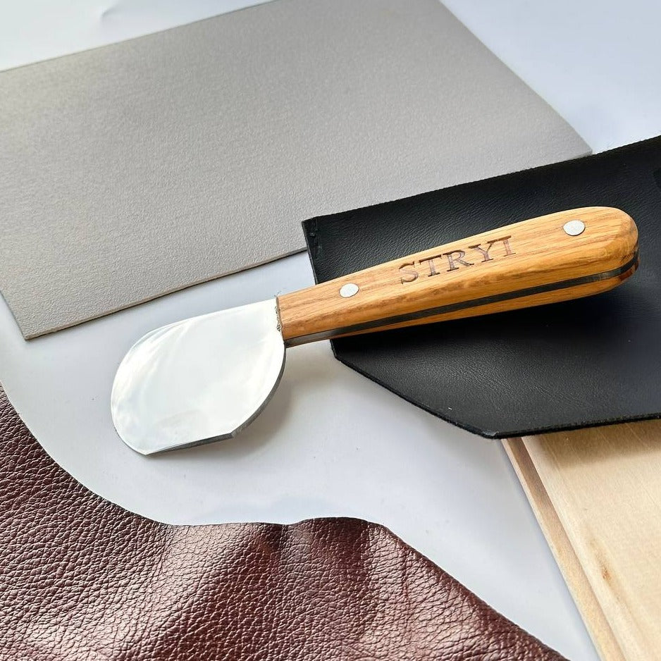 Rounded-bevel skiving knife for leather, STRYI Profi, Leather craft knife, Skiving leather, Leather working tool