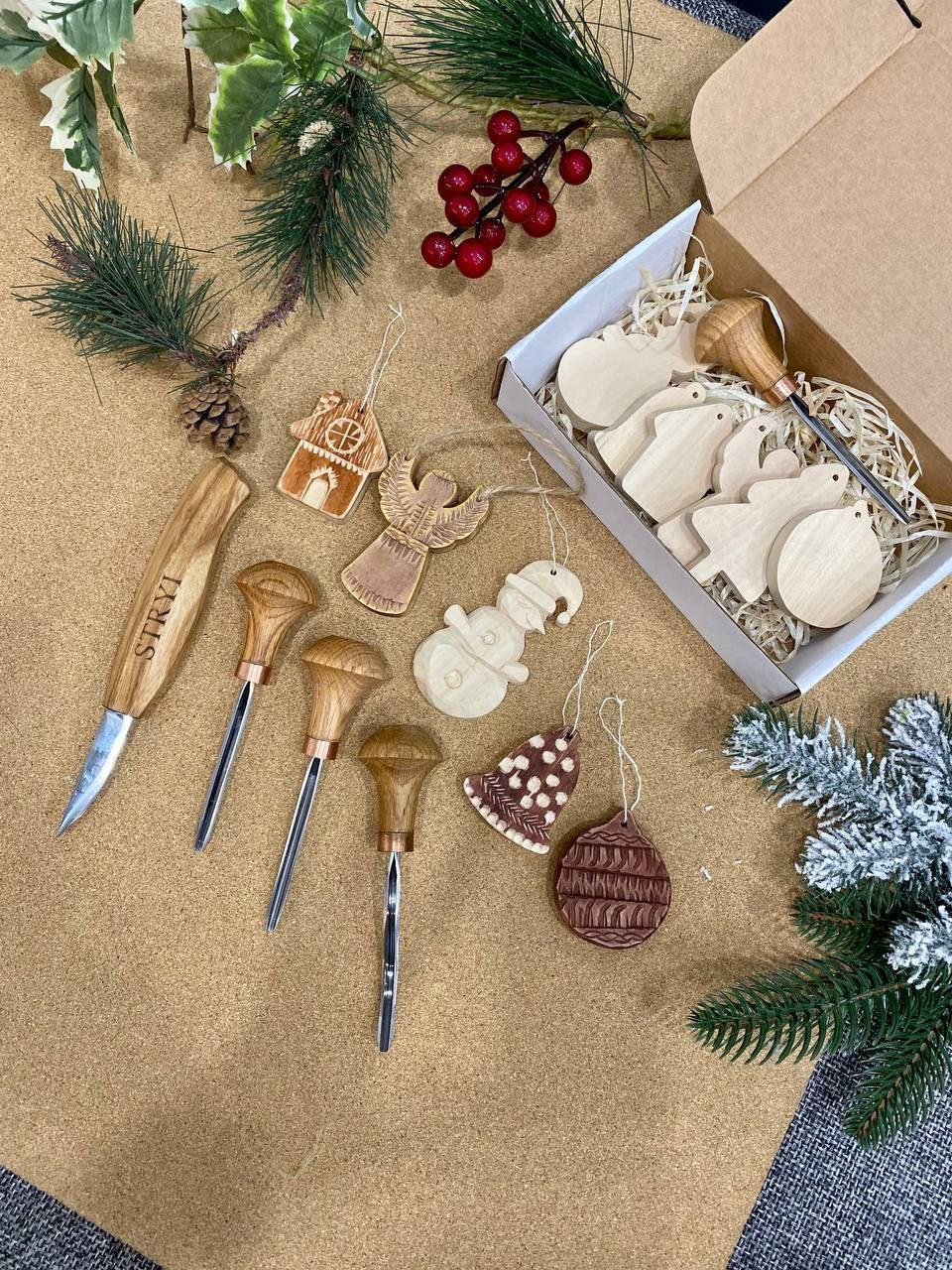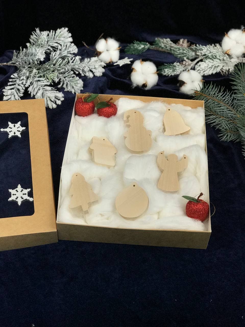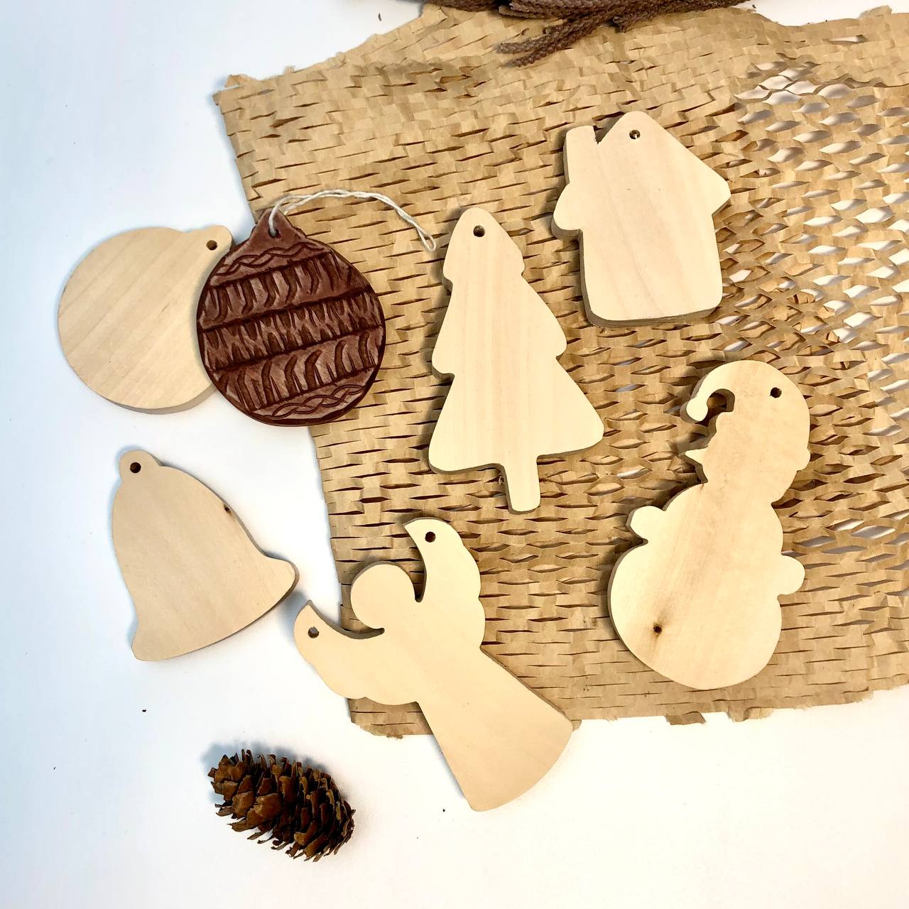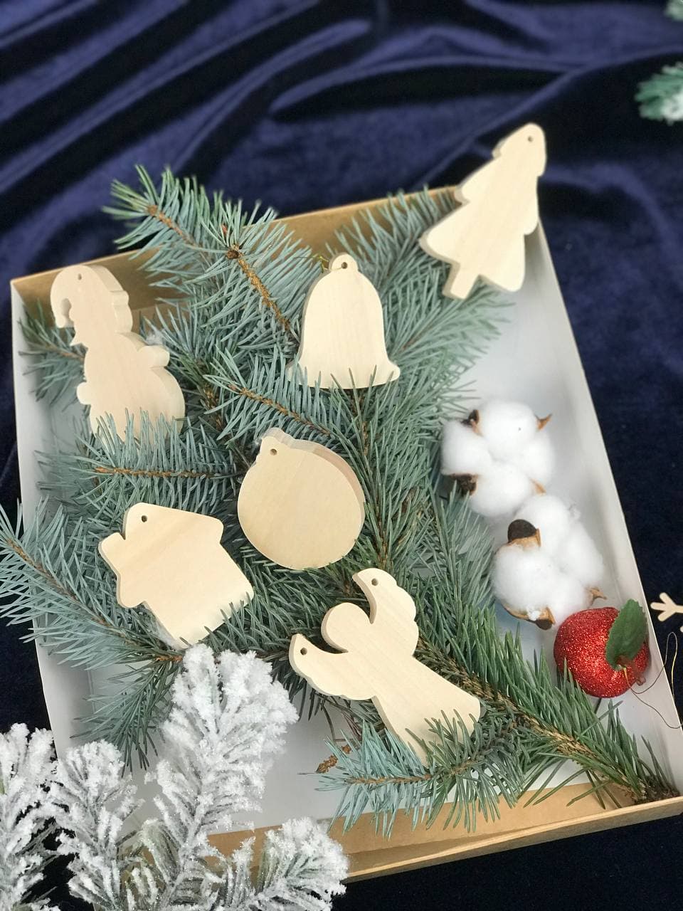 A set of Christmas tree toys in the form of ball, Christmas tree, snowman, bell, angel and bouse will give parents a great opportunity to carve with our tools, pick up felt-tip pens, markers or paints and engage in exciting activities with children.