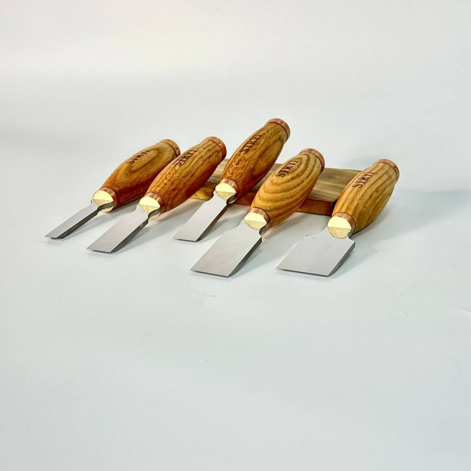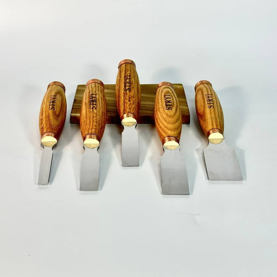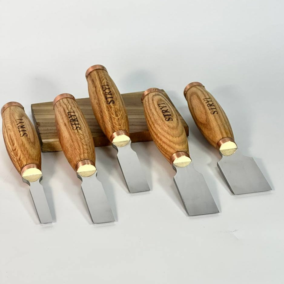 Stryi Profi Short Chisel Set 5 pcs is our premium forged steel carving set. Ideal for sculpture making and woodworking, this set includes flat, beveled, and frame chisels, ensuring precision in every cut. Perfect for Father's Day, joinery, and more.