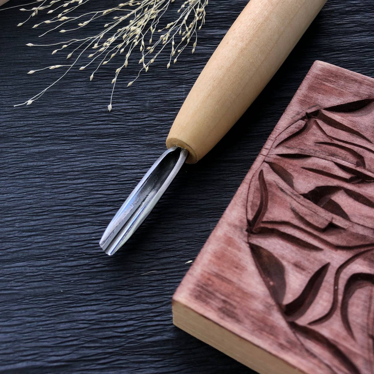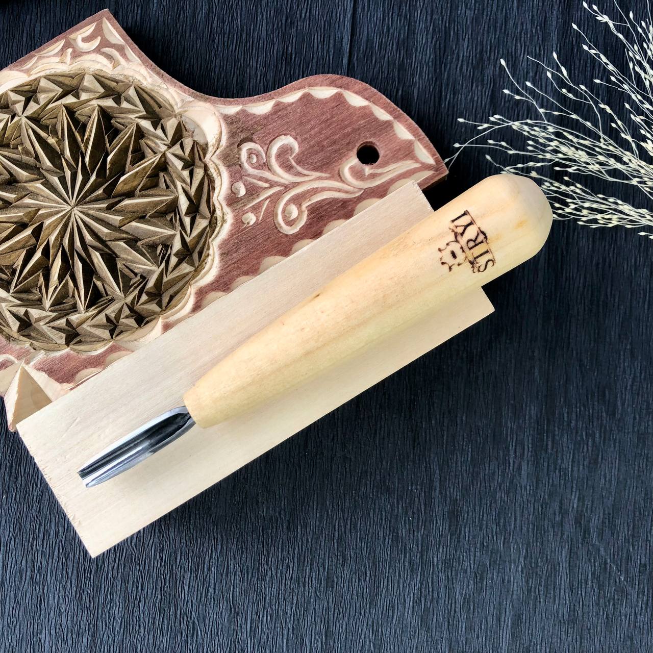 This short gouge STRYI Standart (unpolished version) is perfect tool for combination with other tools to make a volumetric chip carivng and relief carving patterns.