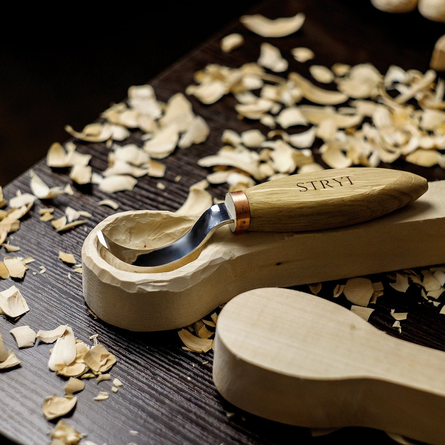 Spoon Bowl Kuksa carving hook knife 50mm STRYI Profi, Hook knife, Spoon knife, Carving plates
