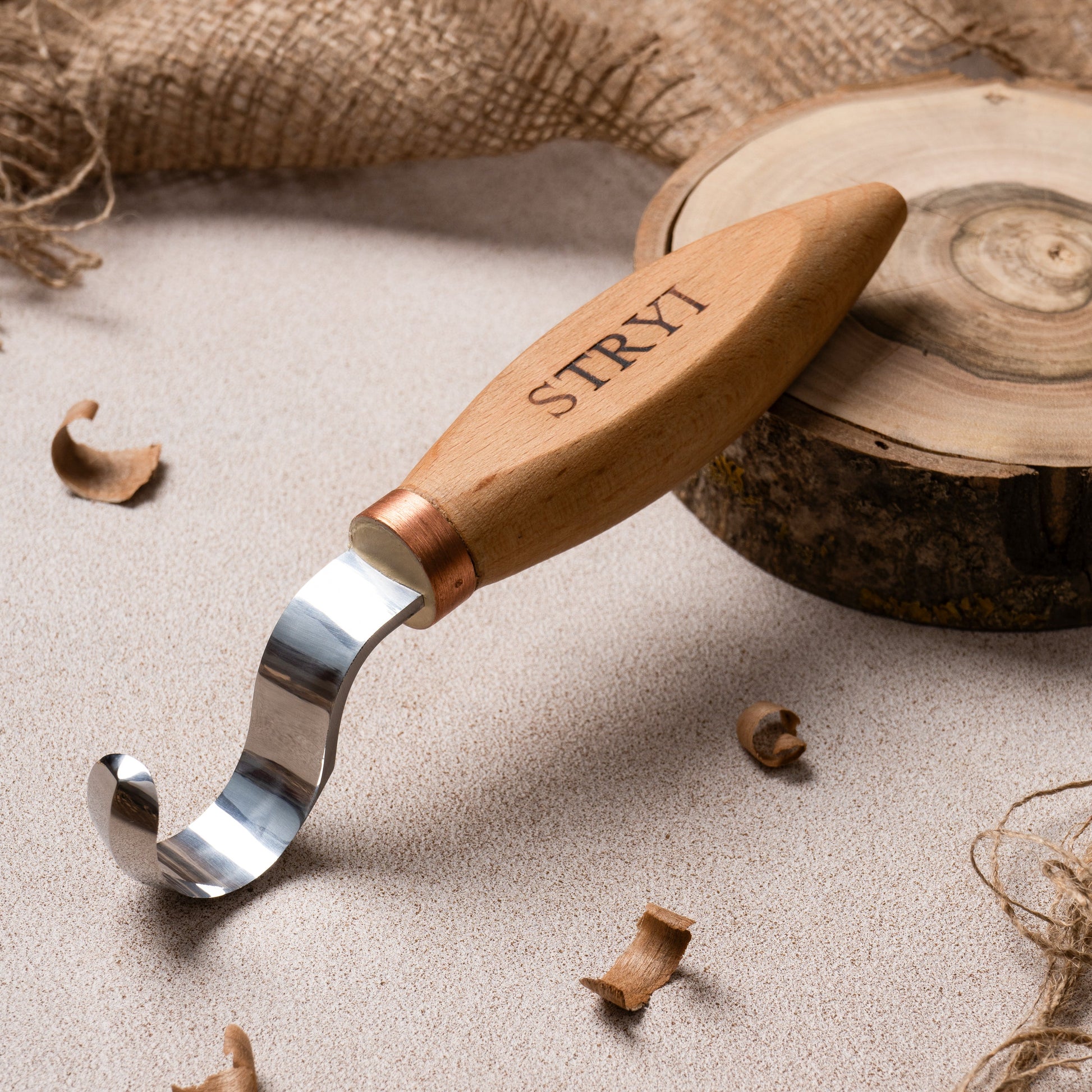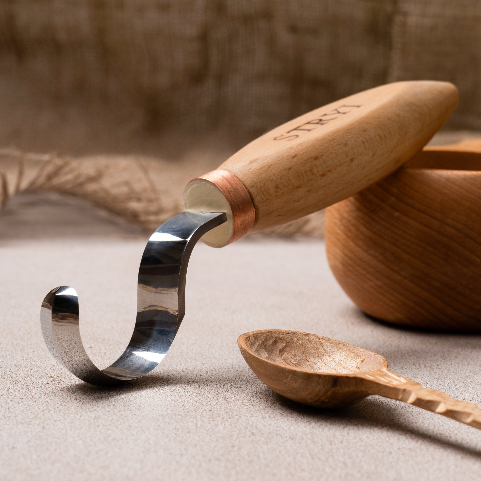 Spoon carving tool, Hook knife 35mm double-sided cutting edge STRYI Profi, Spoon knife