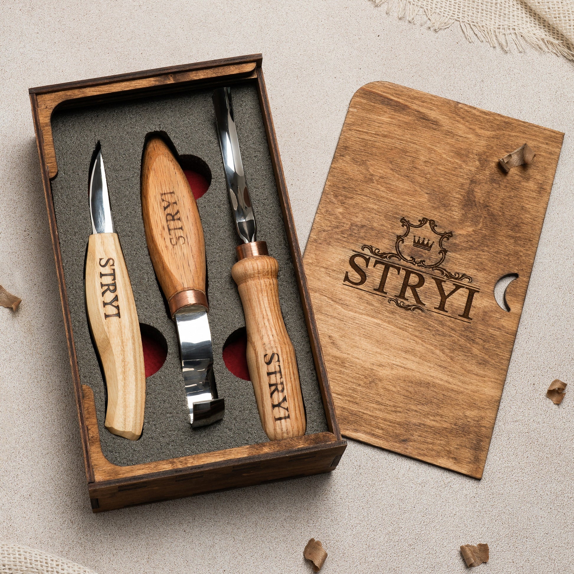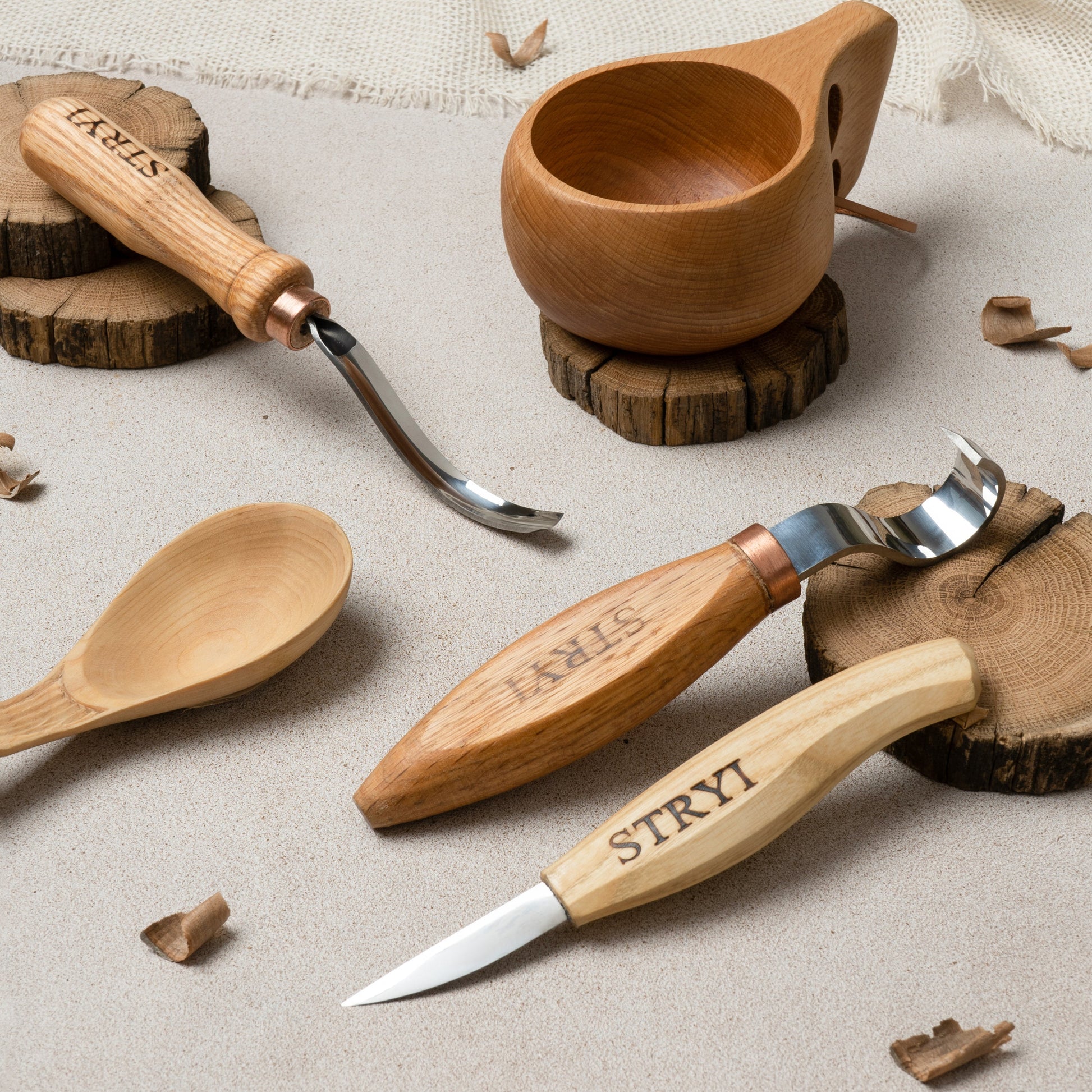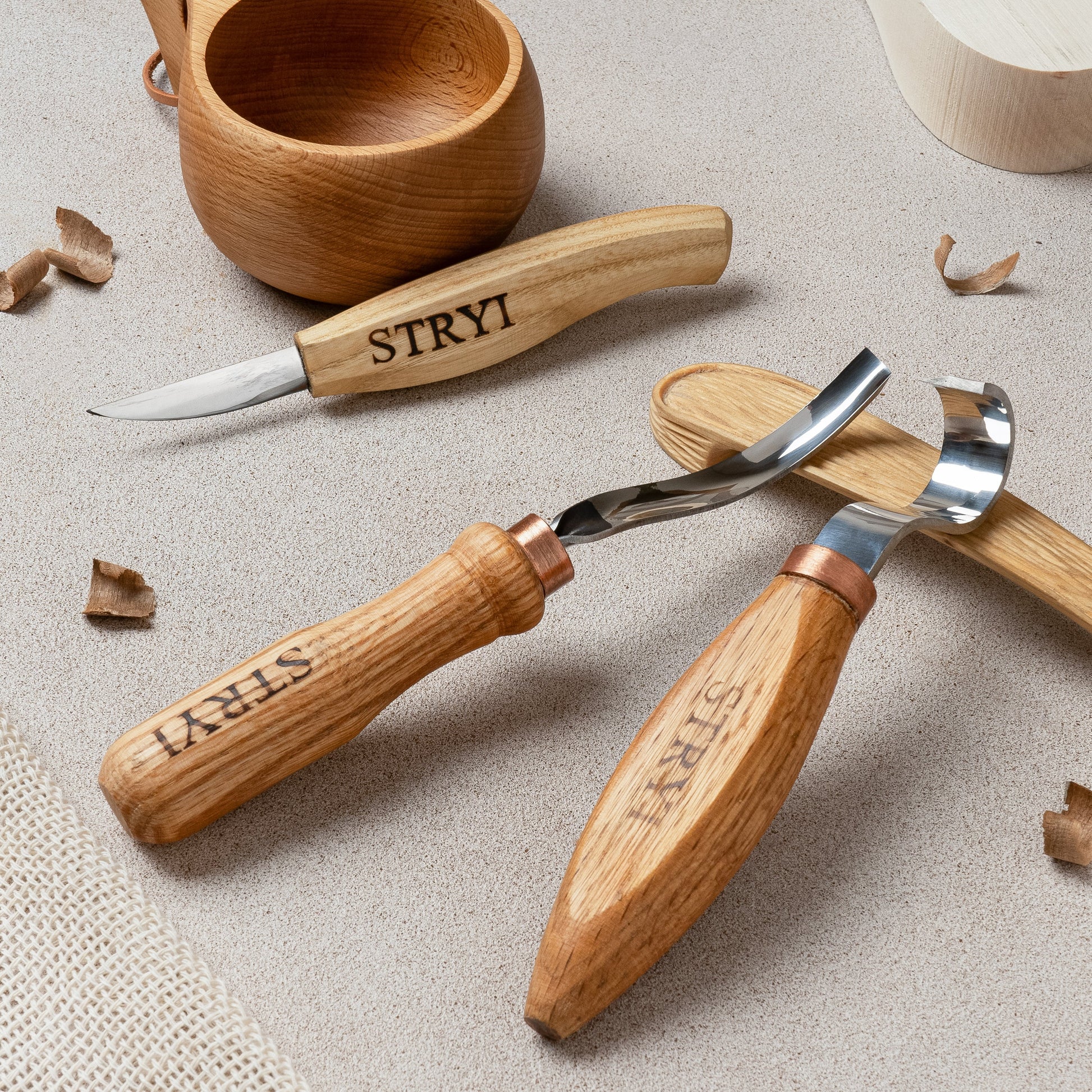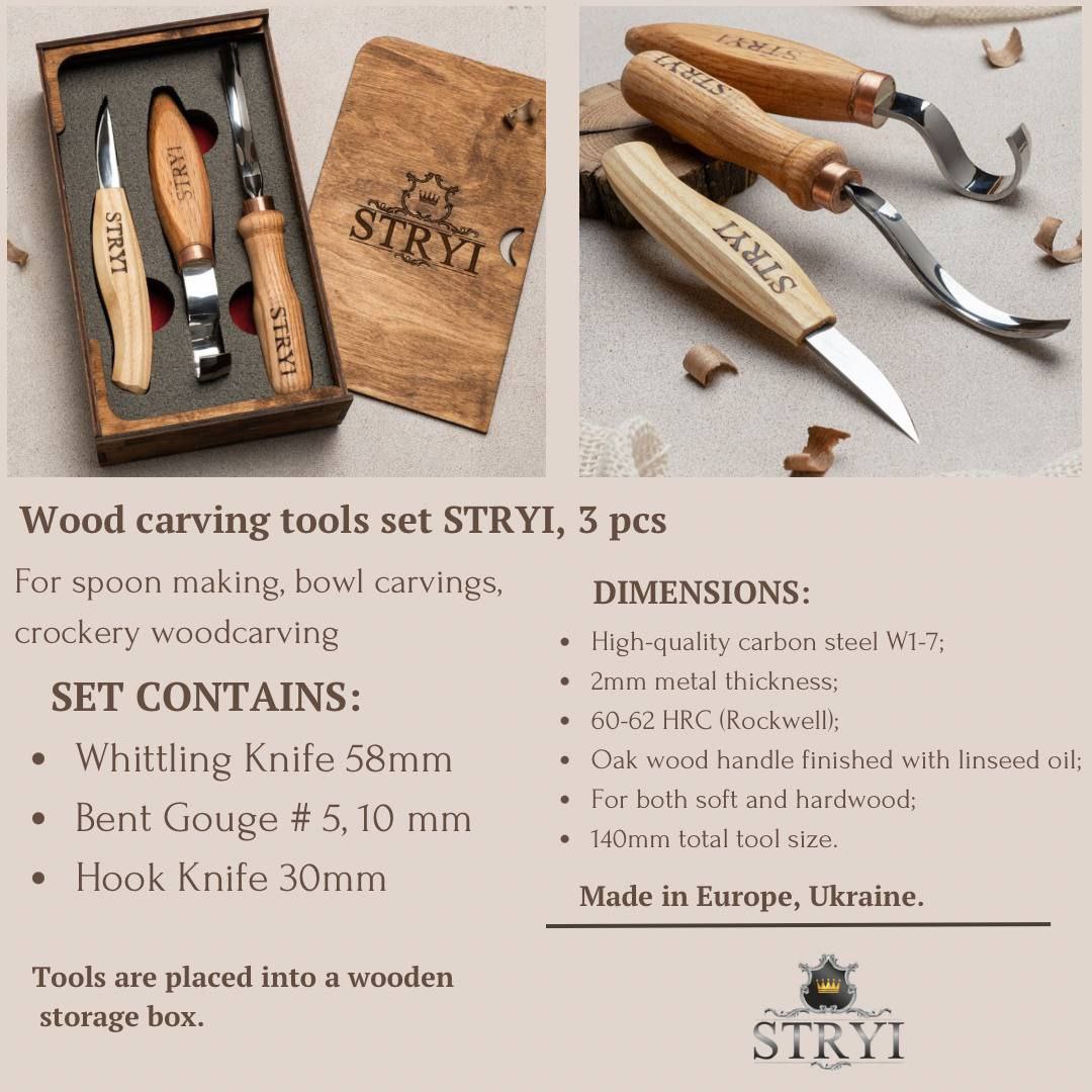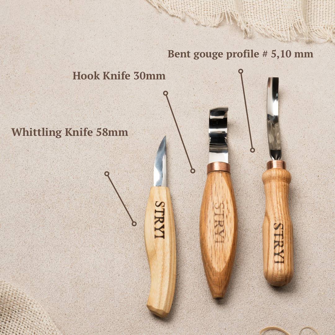 Spoon carving kit, Wood carving set 3 pcs STRYI Profi, Carving tools, Hook knife, Spoon making