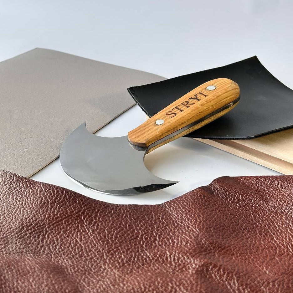 STRYI Profi Leather Round Knife, Half-moon knife for leather cutting
