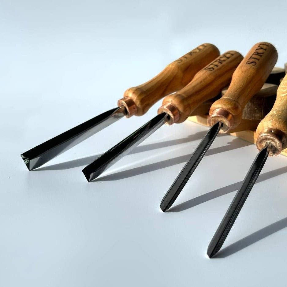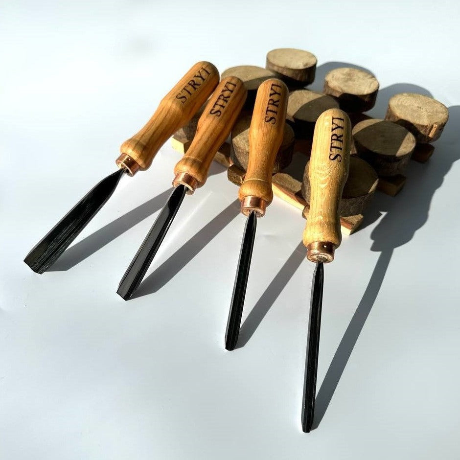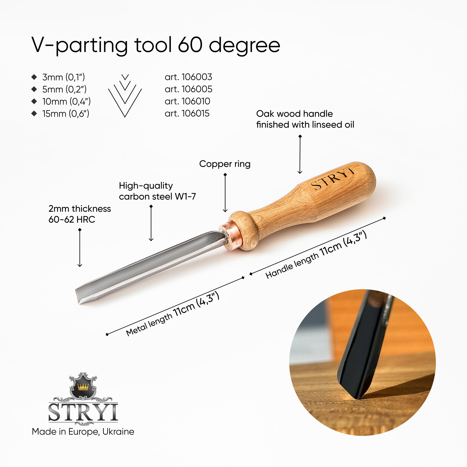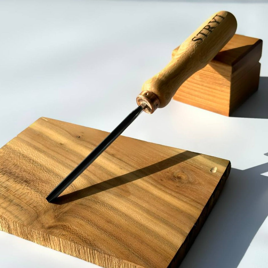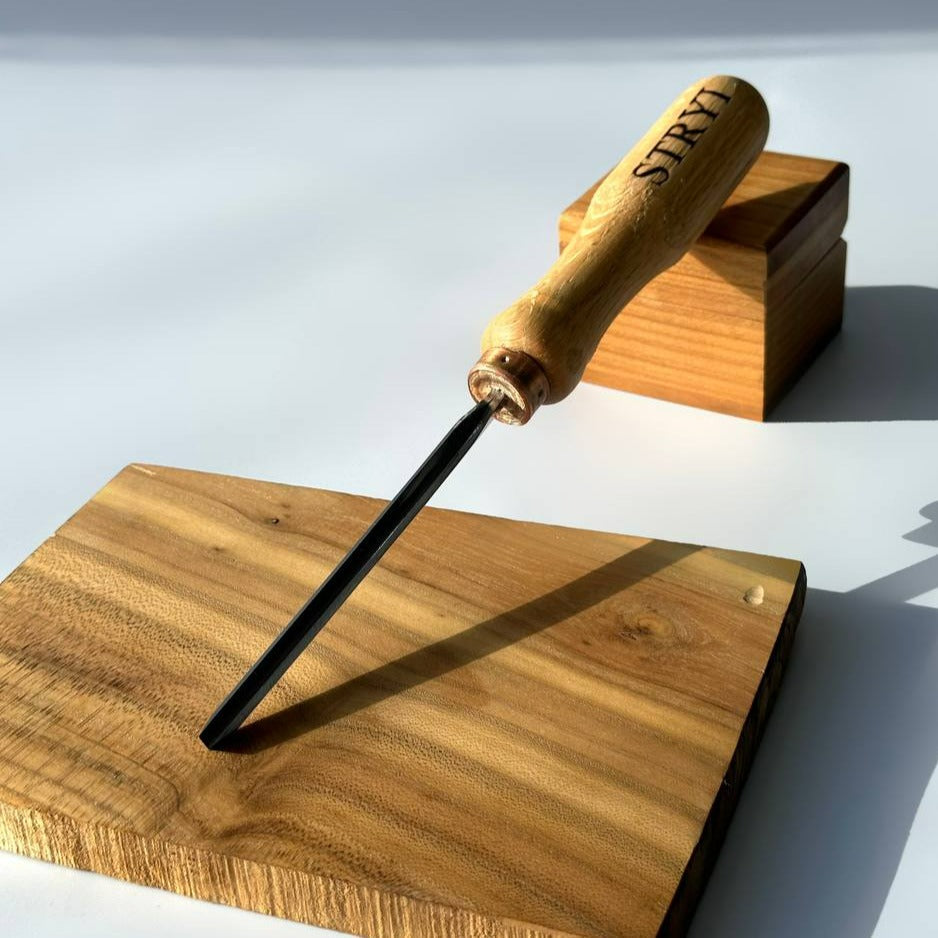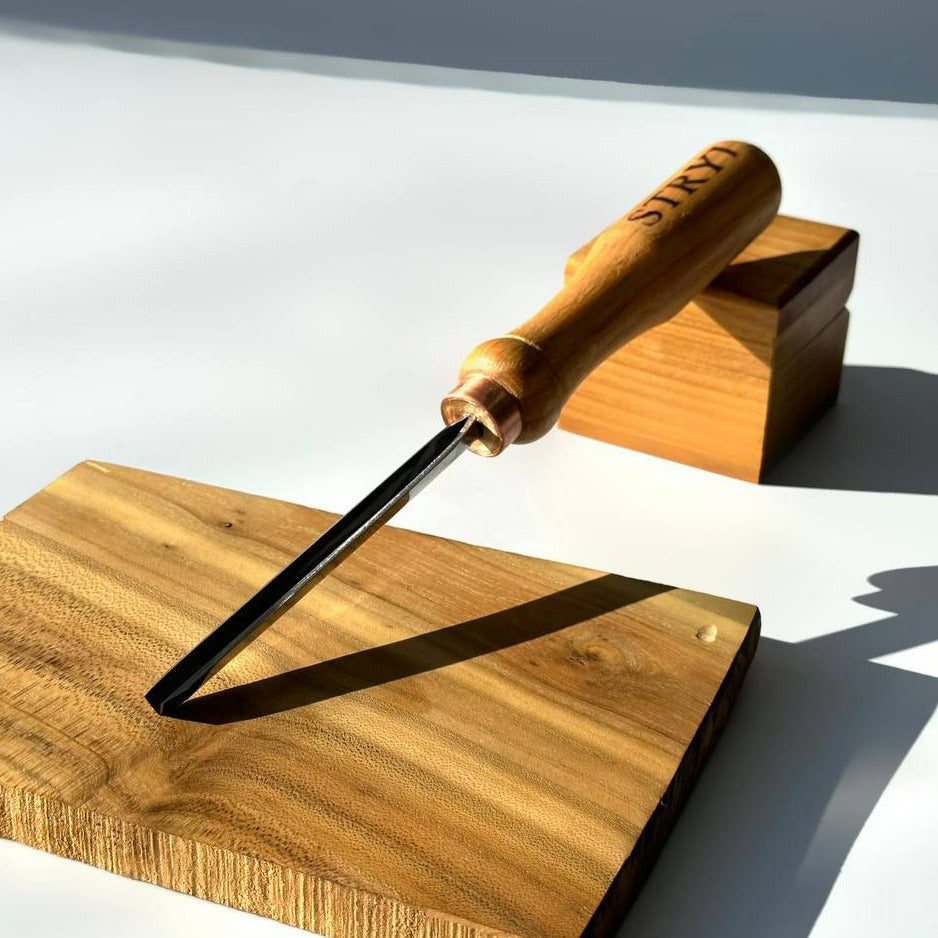 V-parting chisel 60 degrees STRYI Profi, a basic wood carving tool is used to create different beautiful patterns and to fulfill carving by showing important elements. V-parting tools are important and integral chisels in woodcarver storage.