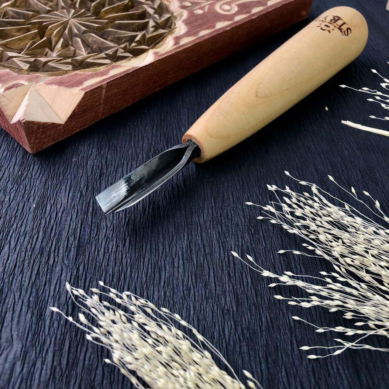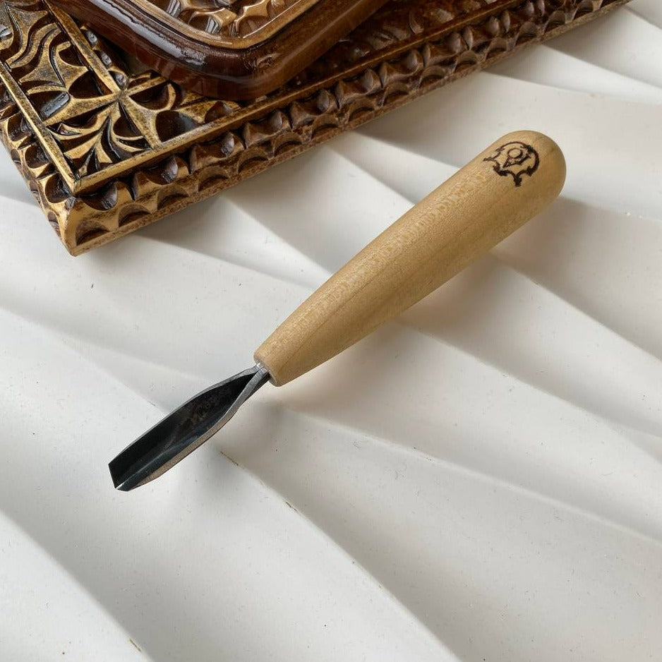 This сarving V-parting chisel STRYI Standart is a versatile tool that allows you to achieve high-quality cuts in relief and chip carving.