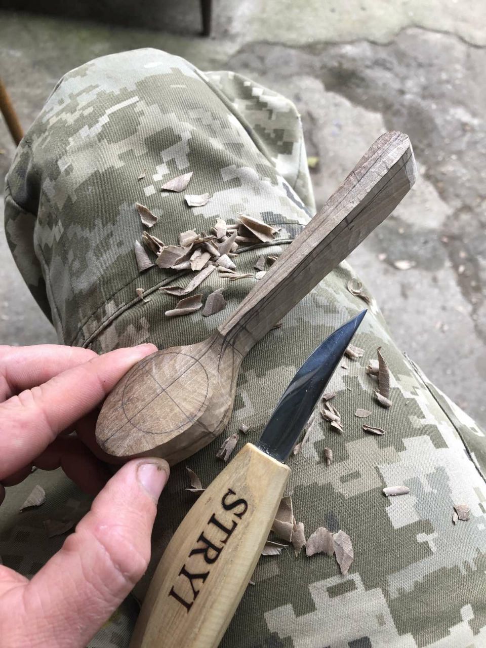 Whittling knife for wood carving 58mm STRYI Profi, art.185812 is used for whittling figures, making the shape of a spoon, kuksa, and other items. It has a 58mm size of the blade. The handle is designed according to the properties of the cutting process and position in hand. This knife perfectly combines with palm chisels for making figurines, caricatures, and other items.