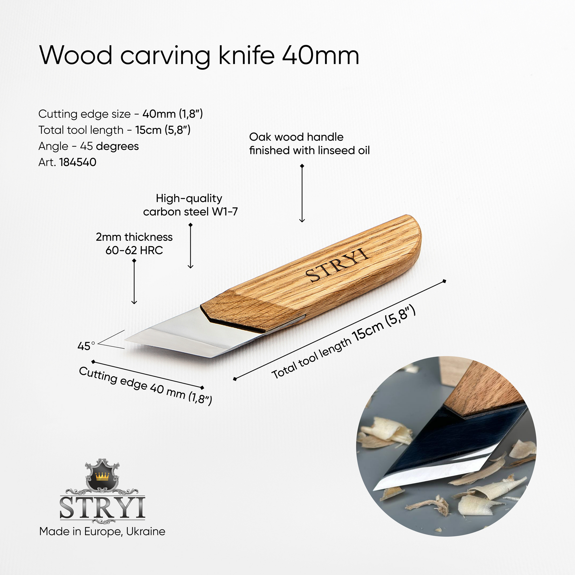 Carving knife 40mm - traditional woodcarving tool of Eastern Europe style of carving, chip carving, and whittling.