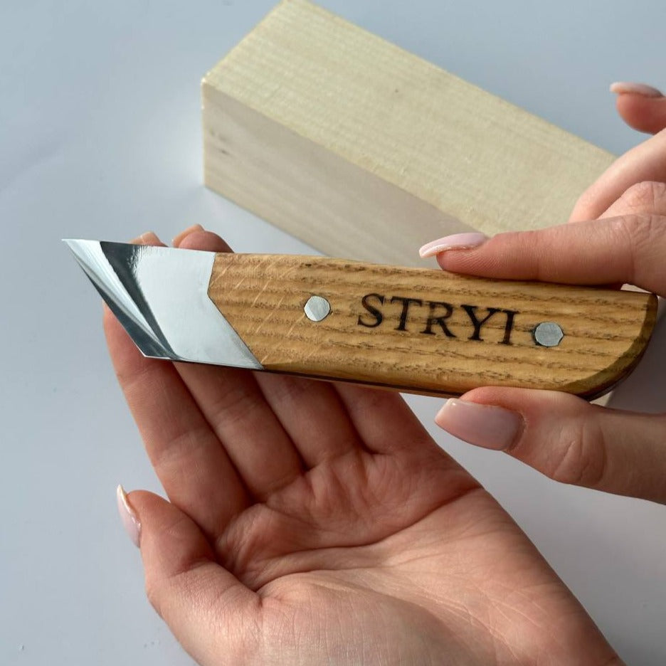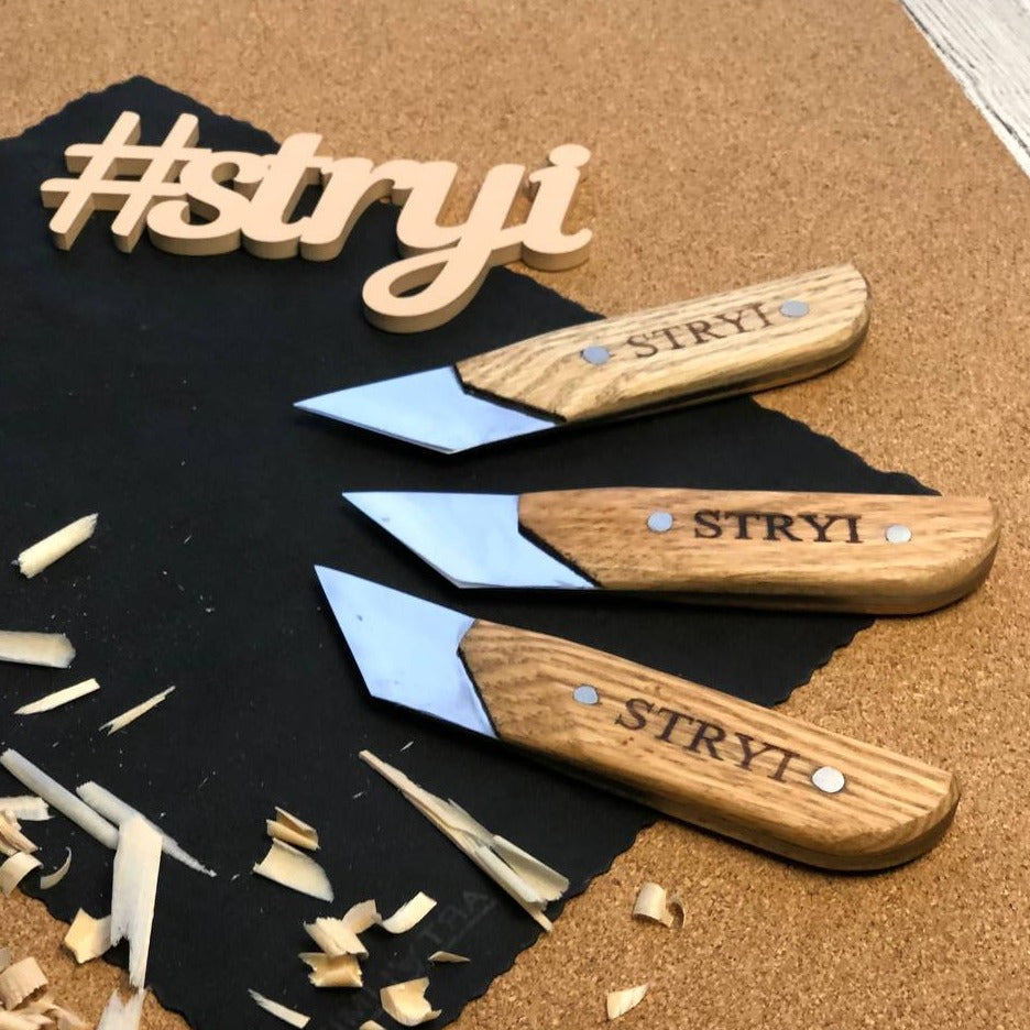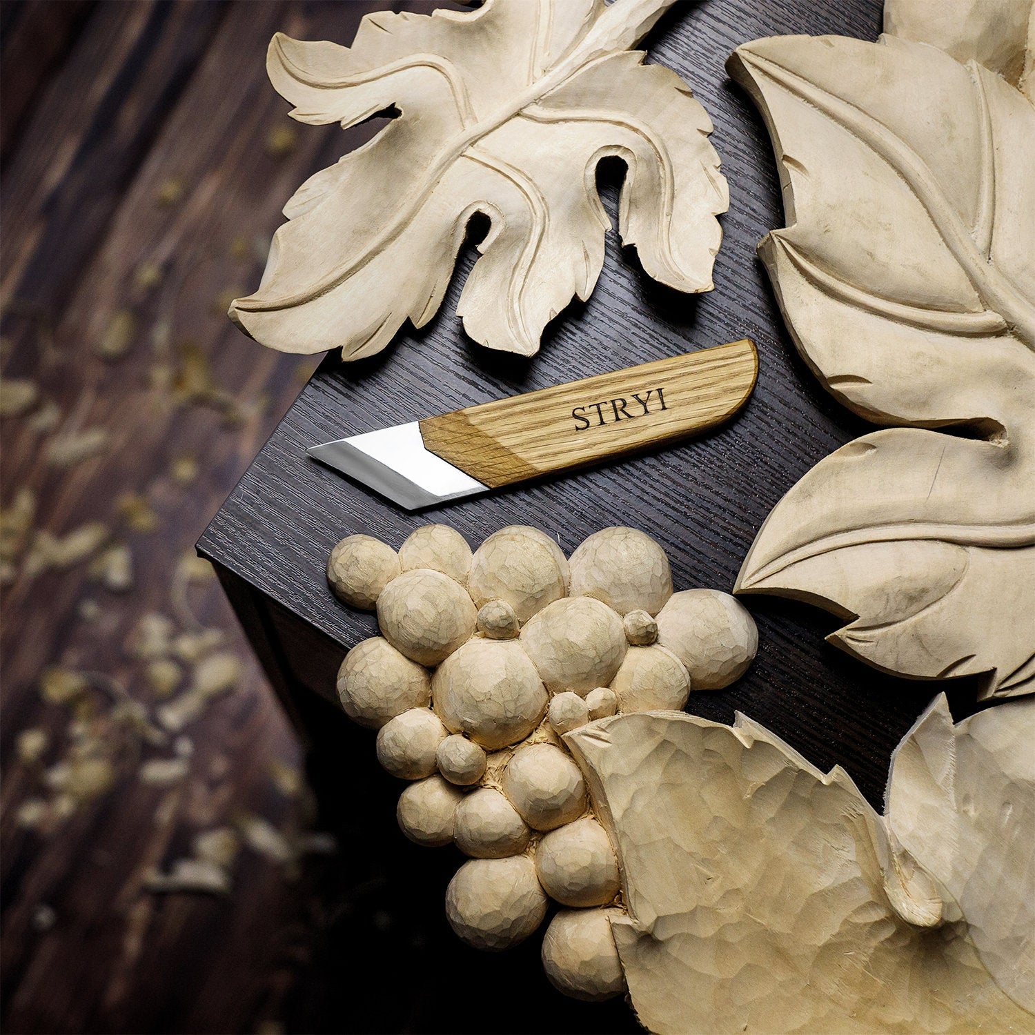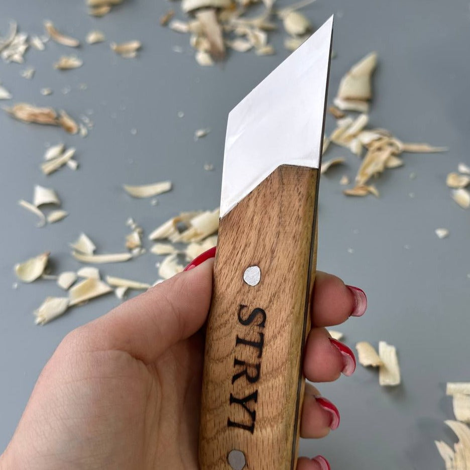 Wide carving knife, carving knife 40mm STRYI Profi, Skewed knife, Knife for sculpting