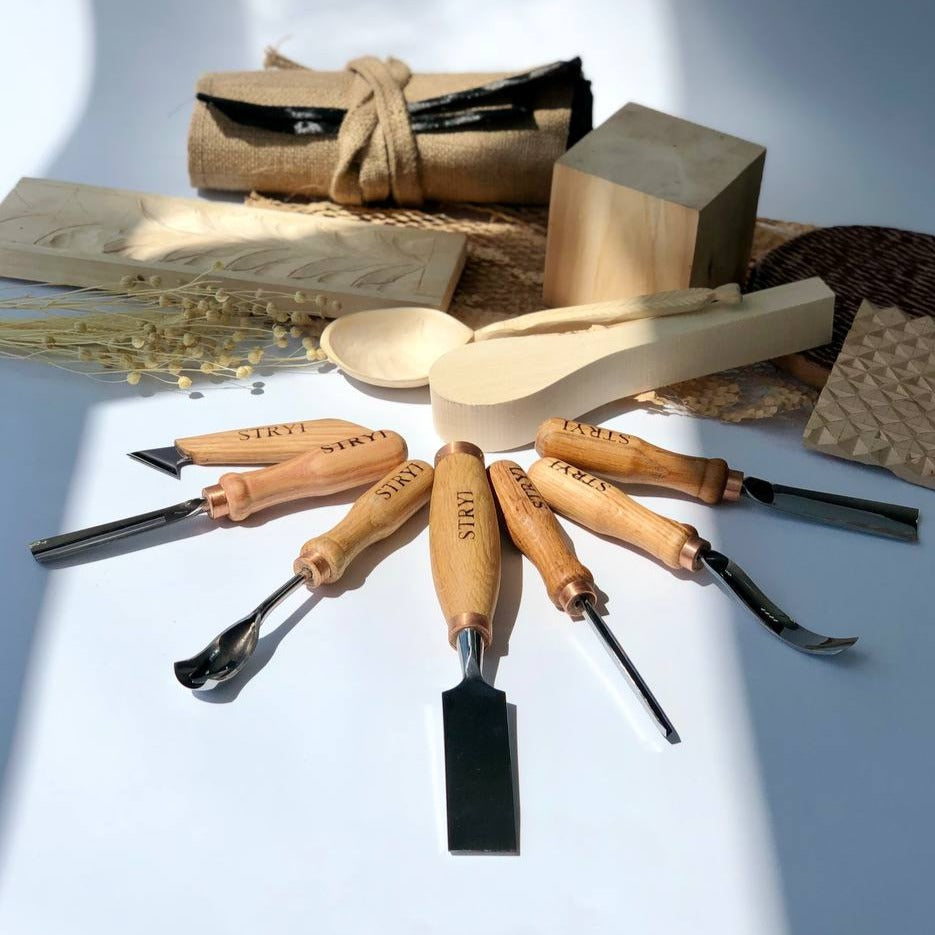 Discover the artistry of wood carving with the STRYI Profi Wood Carving Kit. This versatile 7-piece set is completed basic tools for relief carving, chip carving, and carving spoons and bowls. Whether you're a seasoned professional or a beginner, these high-quality chisels and gouges will enhance your craftsmanship.