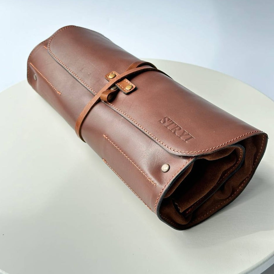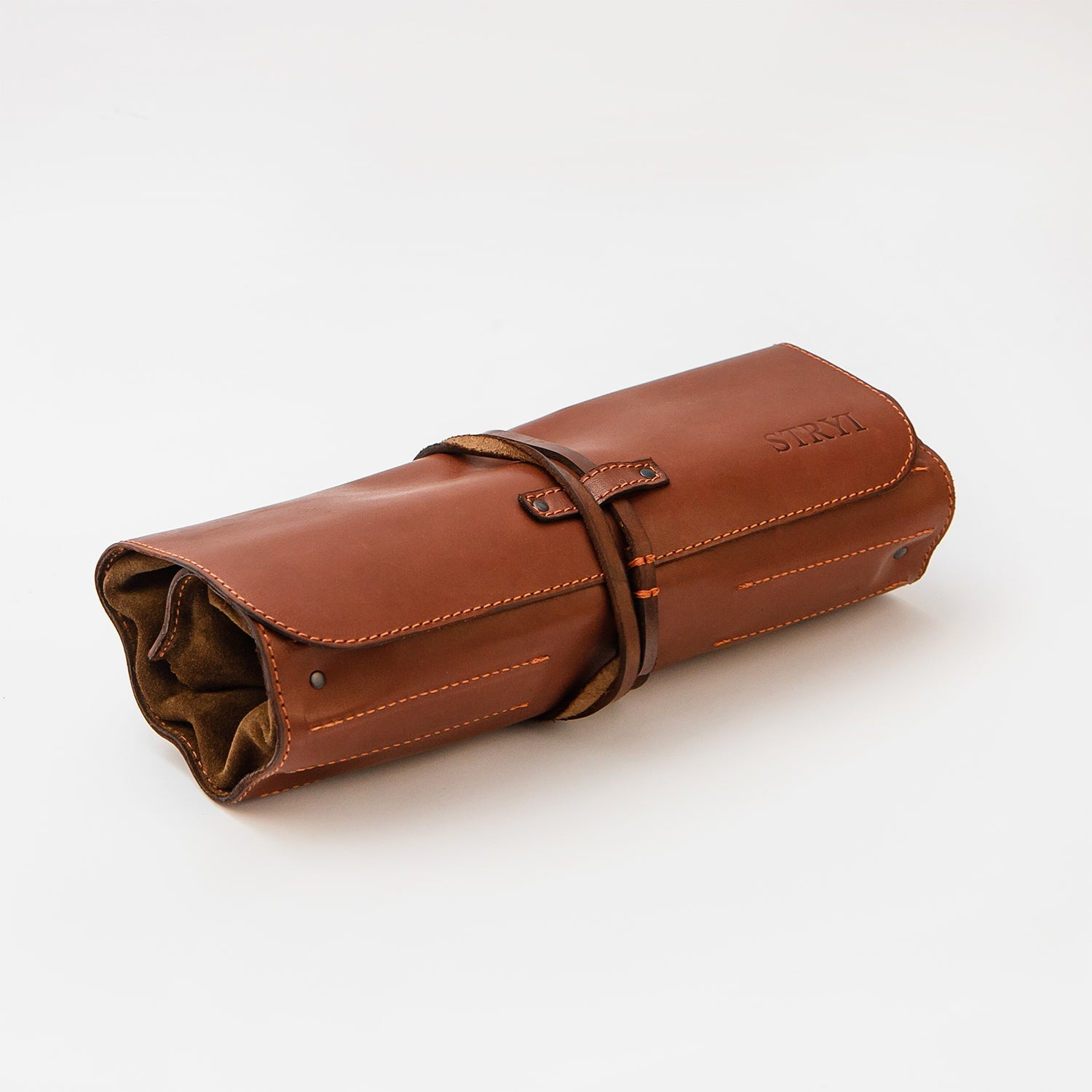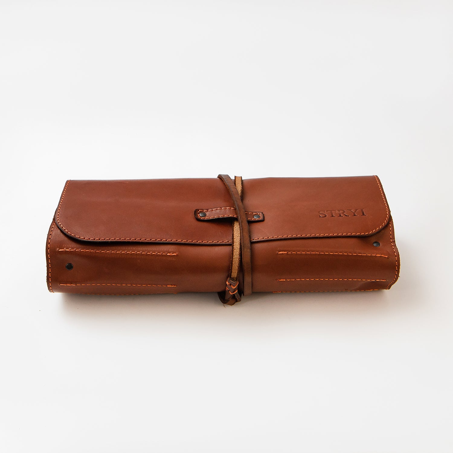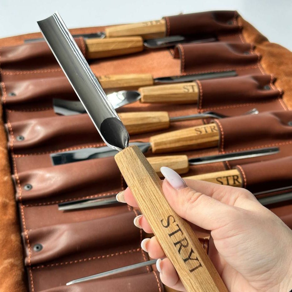 The Set is provided in a genuine leather case. The leather roll case is handmade from genuine leather, and its design allows for the compact placement of tools. The blades are positioned in such a way that they do not touch each other, preventing damage. Every chisel is passed through the technical control department before it is shipped.