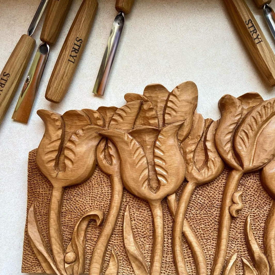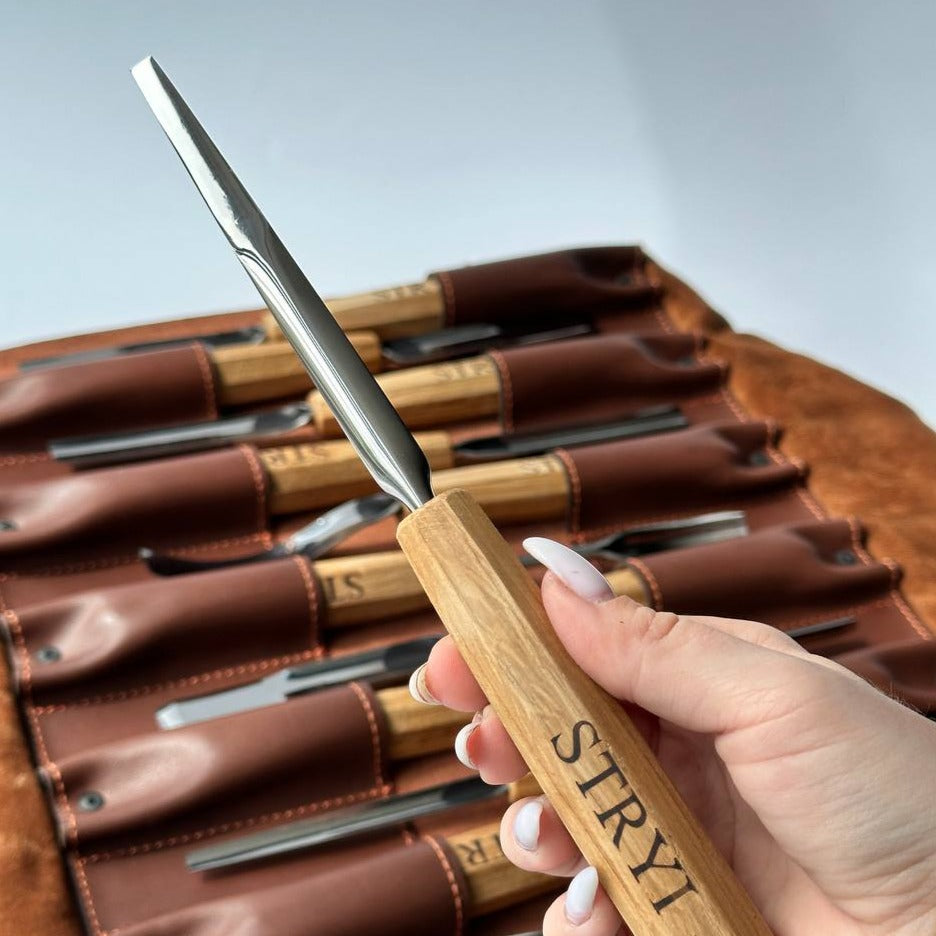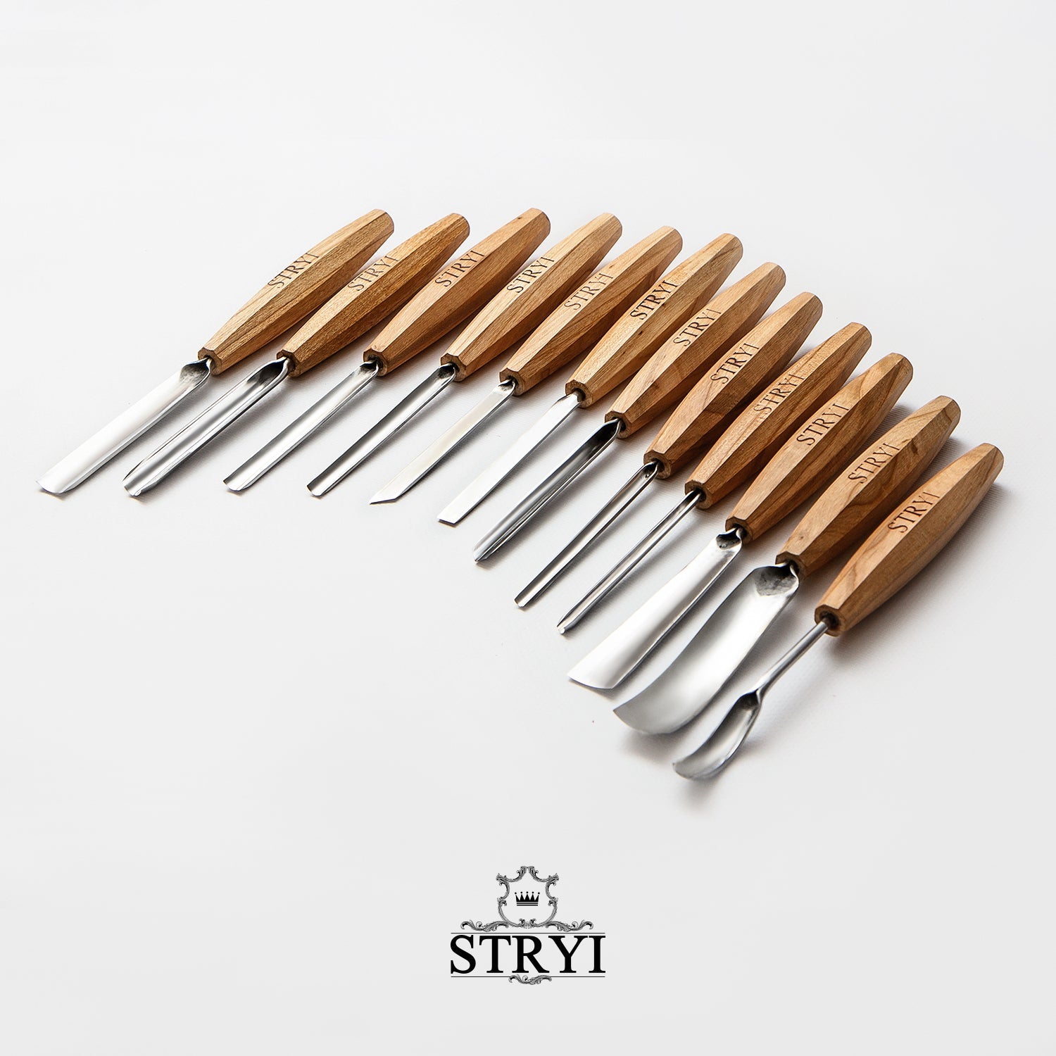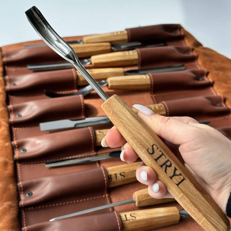 Wood carving kit for relief carving in leather case, 12pcs STRYI Profi, Chisels set, Gouges set, Gift ready
