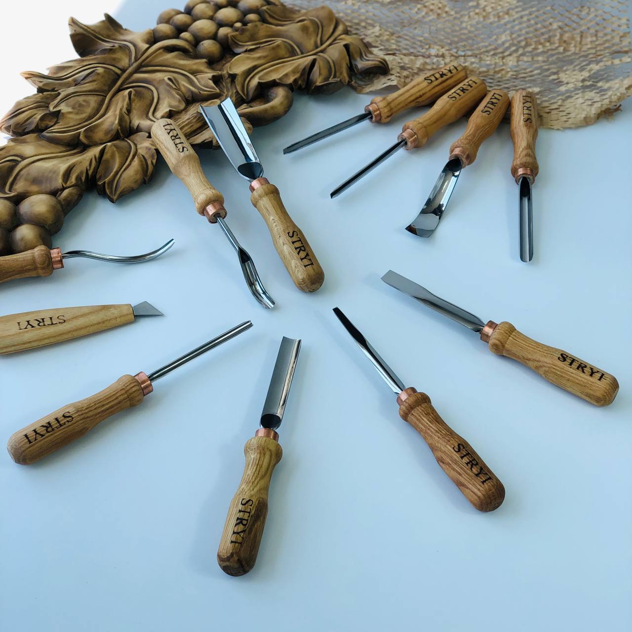 Wood carving kit STRYI Profi 12 pcs, versatile toolset
