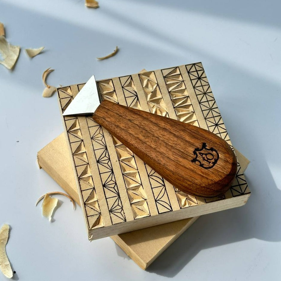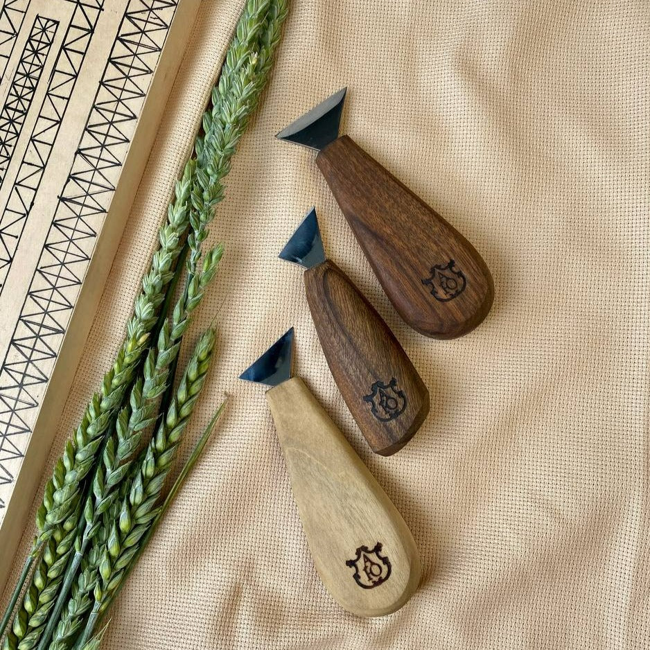 If you are a woodcarver and your favorite style is geometric carving, then a set of 4 knives designed by a well-known Ukrainian carver Adolf Yurev will come in handy. The unique technique provides easy performing of geometric patterns in three cuts.