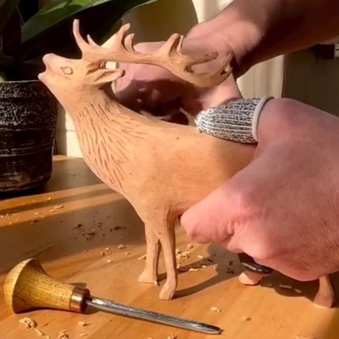 The combination of a whittling knife with a palm V-parting chisel allows you to perform shaping of the figure (animal, doll, gnome, wooden jewelry items, and other small items), detailed it with v-tool (brows, ears, hair, and other elements on small wood piece).